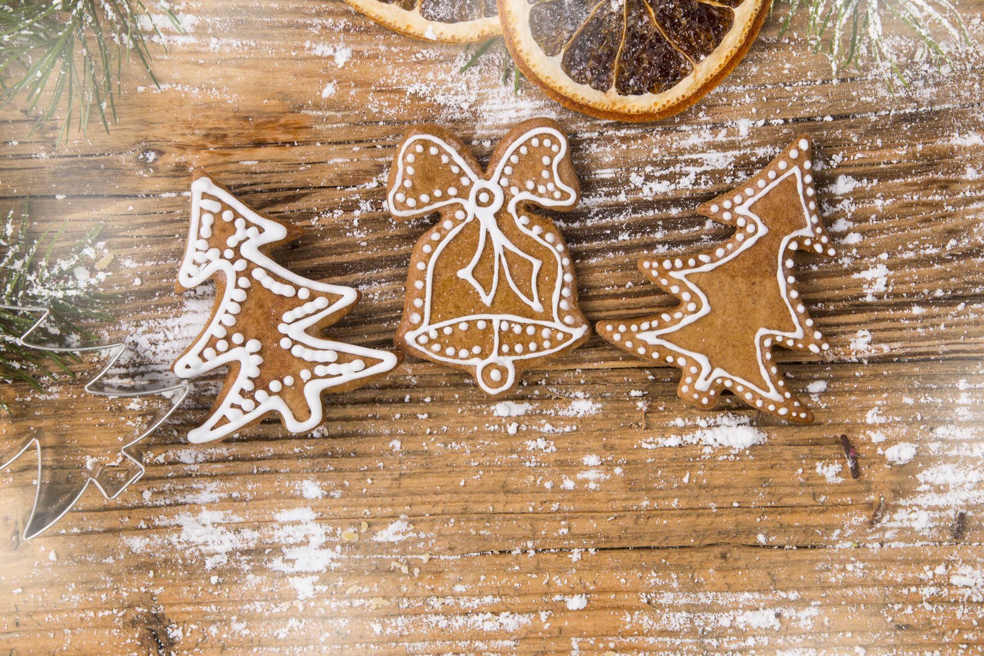Pan de jengibre de Navidad con contorno de glaseado blanco
