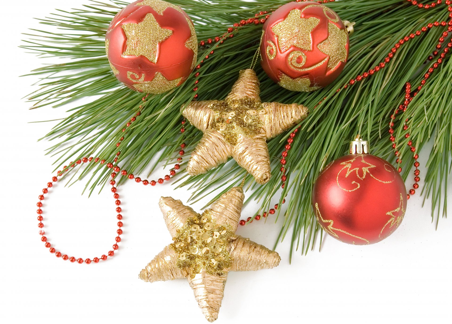Decoraciones de navidad en el fondo de una rama de abetoDecoraciones de Navidad en el fondo de una rama de abeto