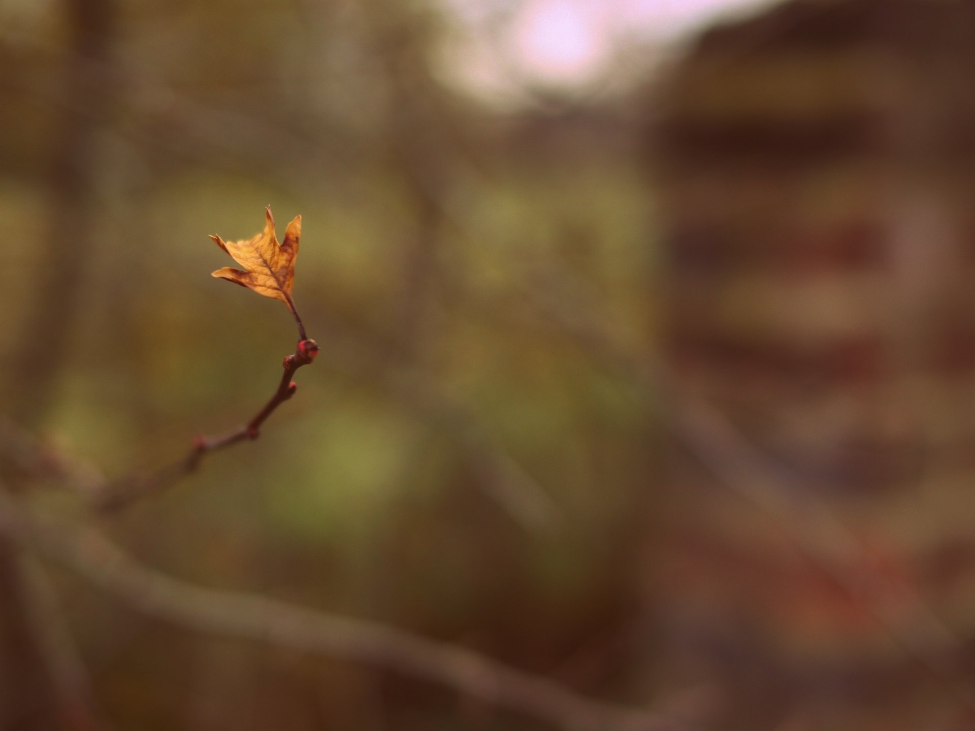 Hoja amarilla de otoño en una rama de árbol con un fondo borrosoHoja amarilla de otoño en una rama de árbol con un fondo borroso