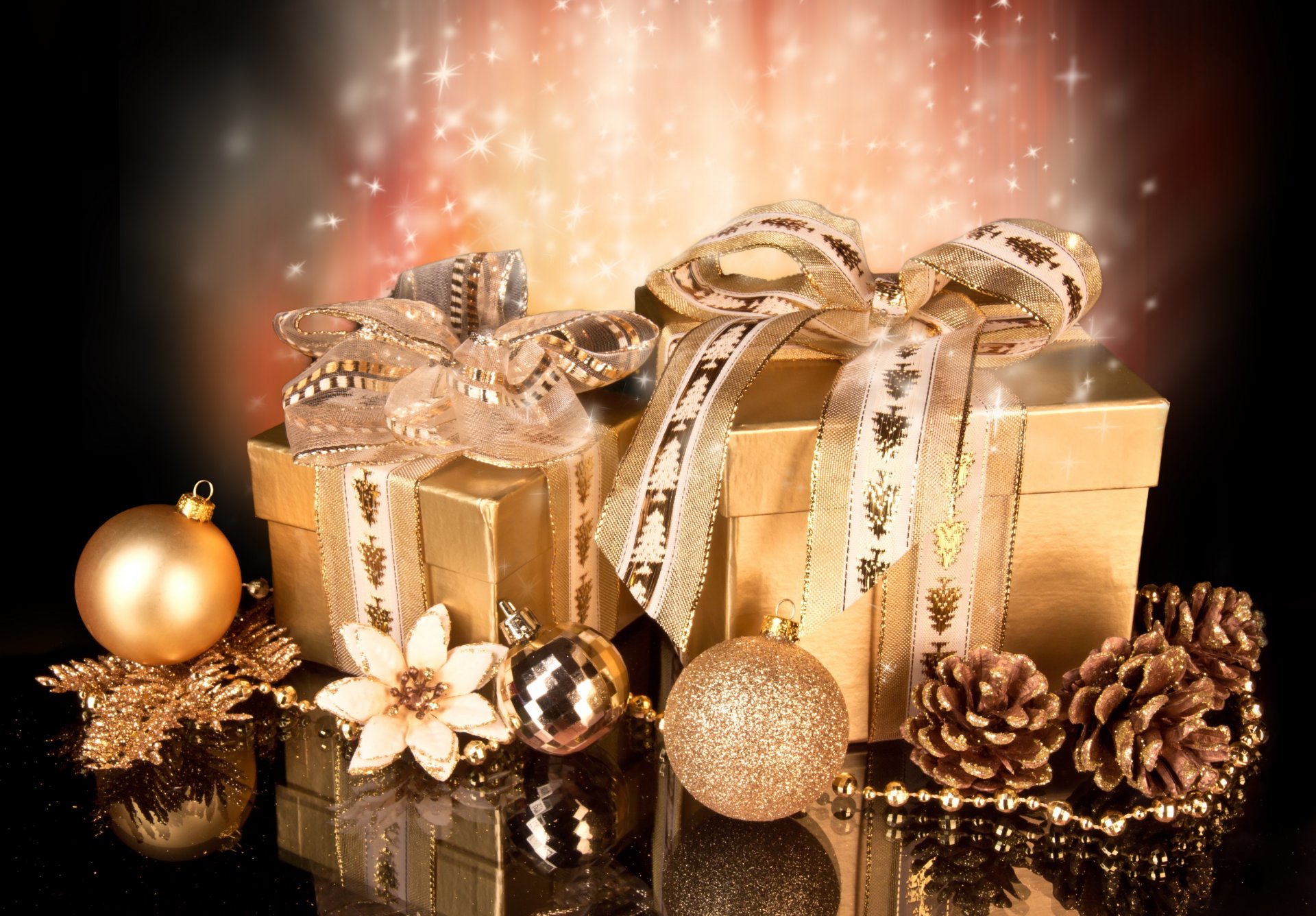 Decoraciones para el año nuevo: cintas, cajas, arcosDecoraciones para el año nuevo: cintas, cajas, arcos
