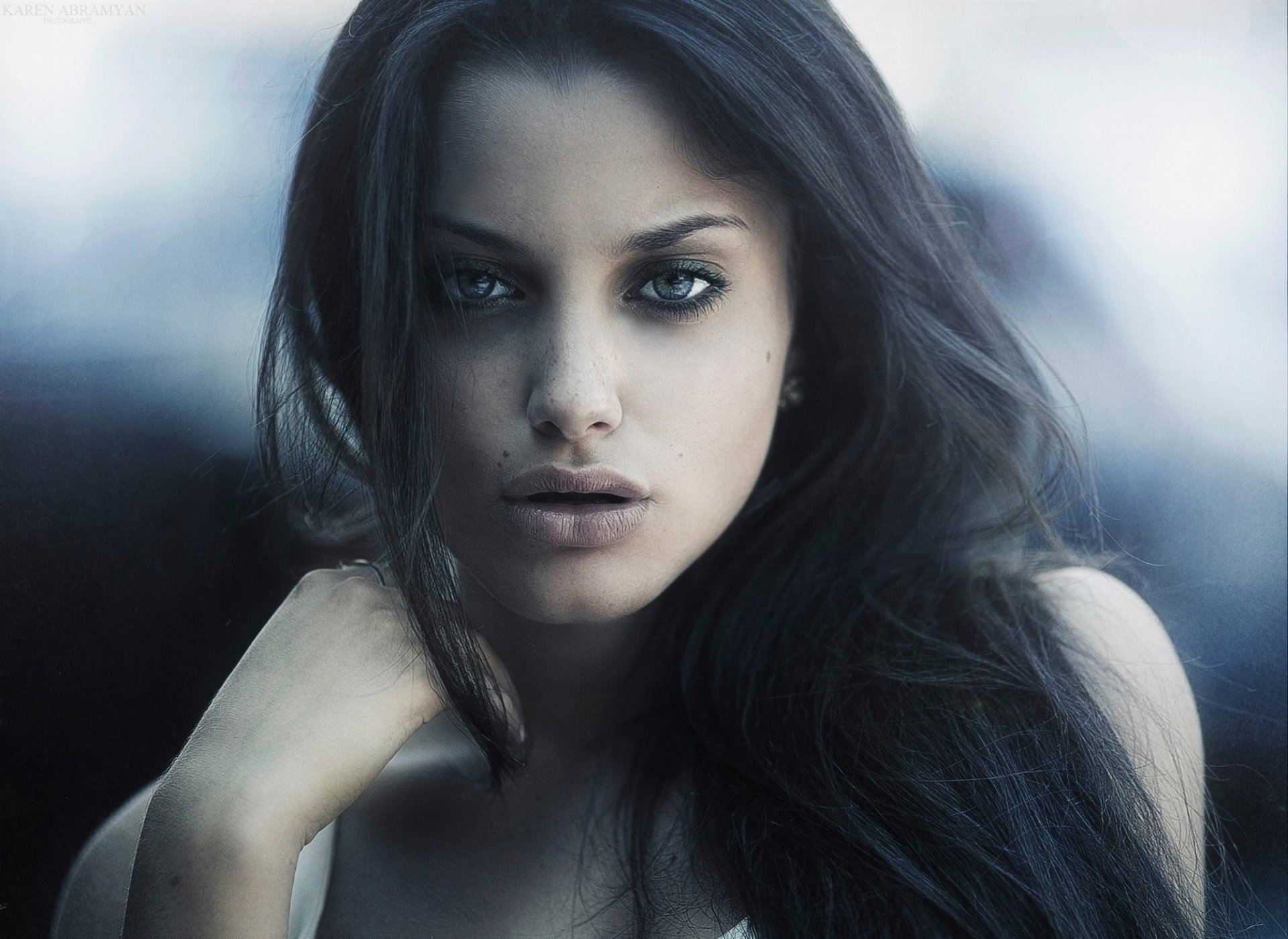 Foto-retrato de una chica con una mirada apasionadaFoto-retrato de una chica con una mirada apasionada