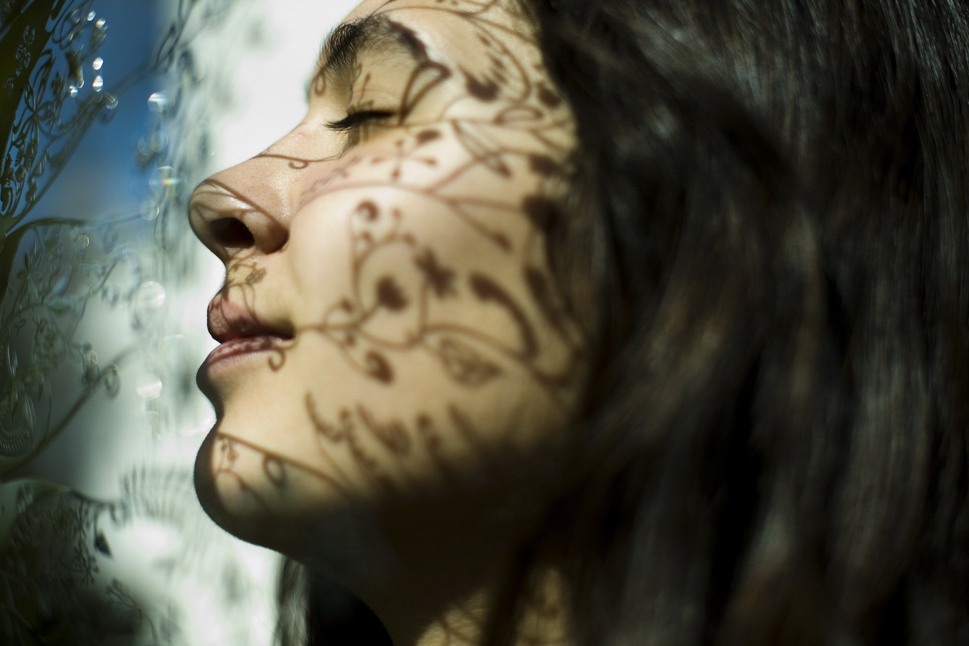 Una serie de pequeños Ángeles. Retrato de una niña con el pelo oscuro