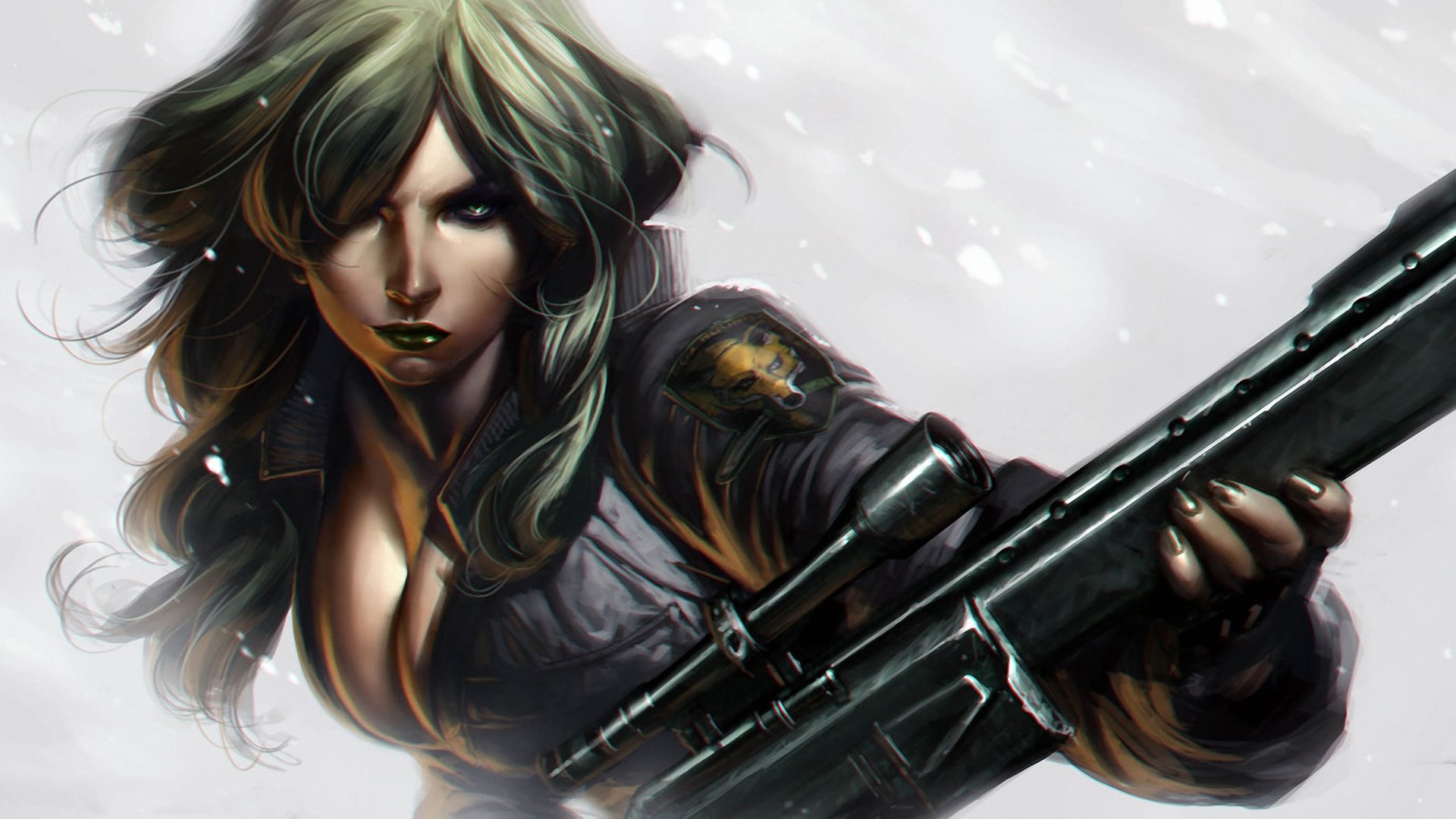 El rifle en las manos de la niña parece amenazanteEl rifle en las manos de la niña parece amenazante