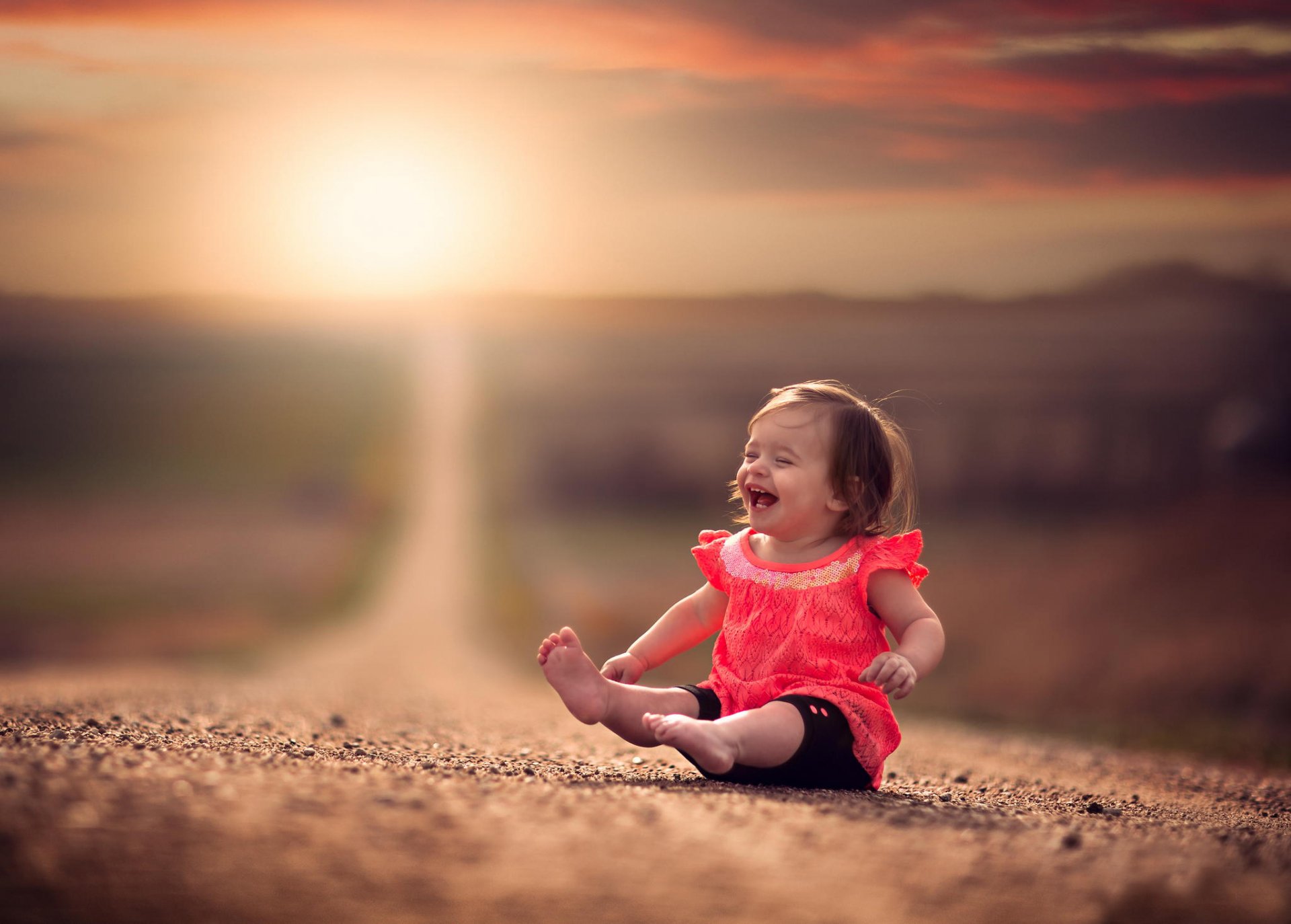 Alegre bebé sentado en el camino