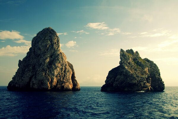 En el mar dos rocas y el cielo
