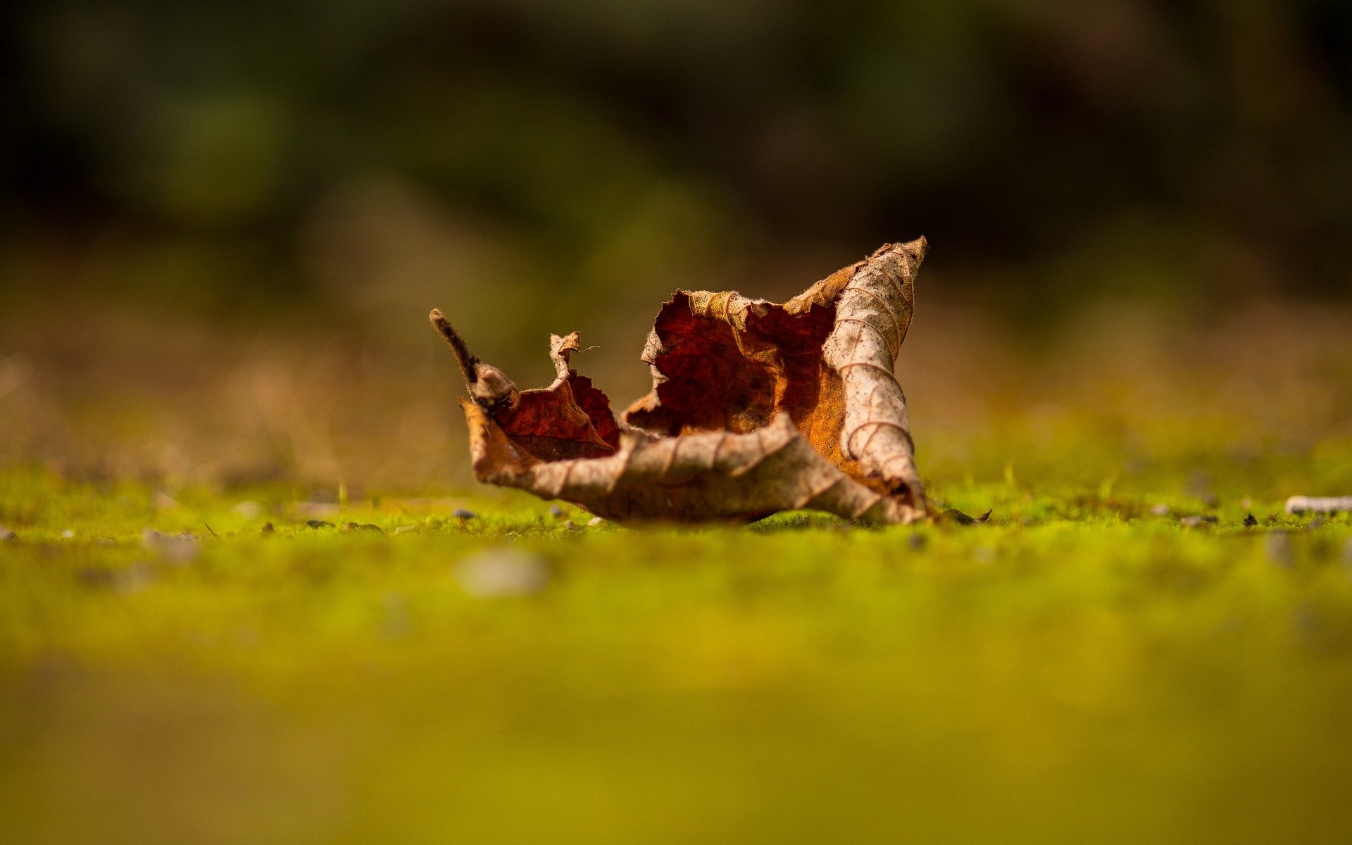 Los brotes de hierba verde se abren camino desde la hoja seca