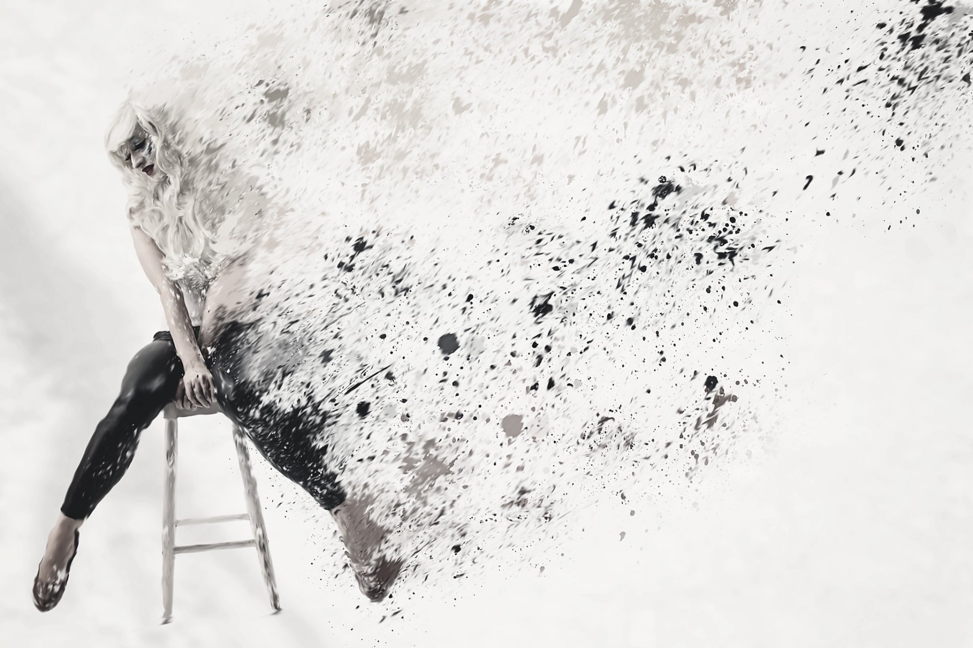 Chica de blanco sentada en una silla frente al océanoChica de blanco sentada en una silla frente al océano