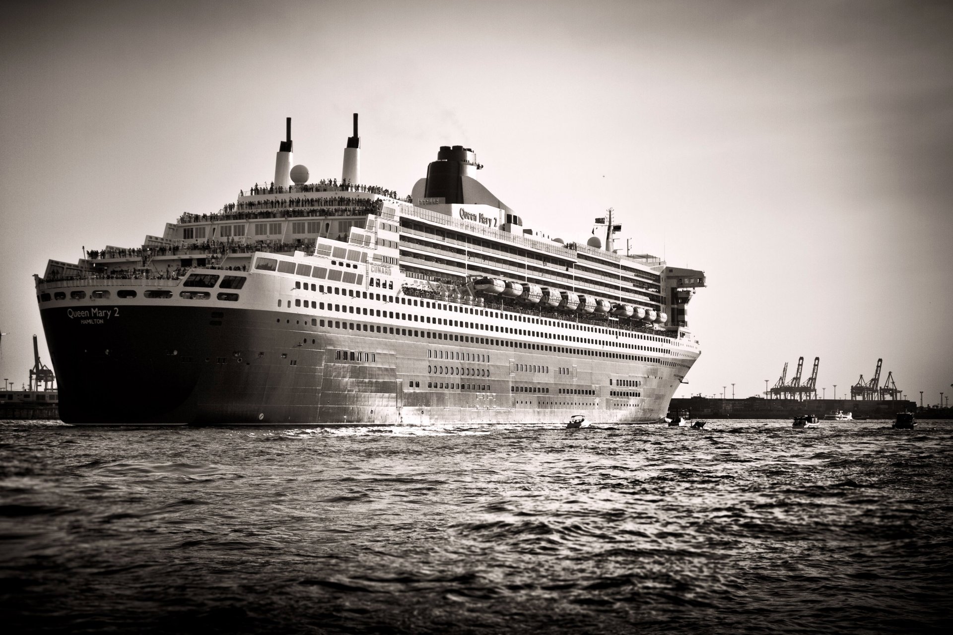 Imagen en blanco y negro de un crucero