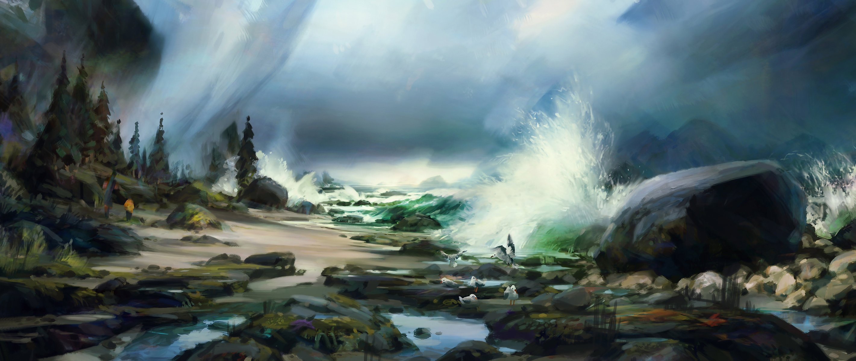 Puesta de sol en el bosque de primavera después de la lluviaPuesta de sol en el bosque de primavera después de la lluvia