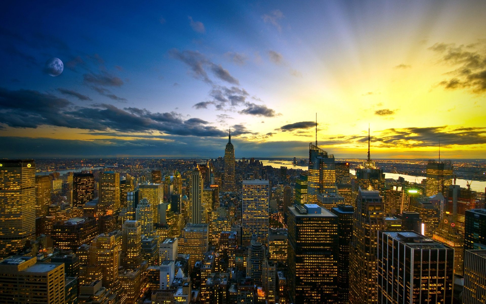 Puesta de sol en el cielo de la tarde sobre la ciudad