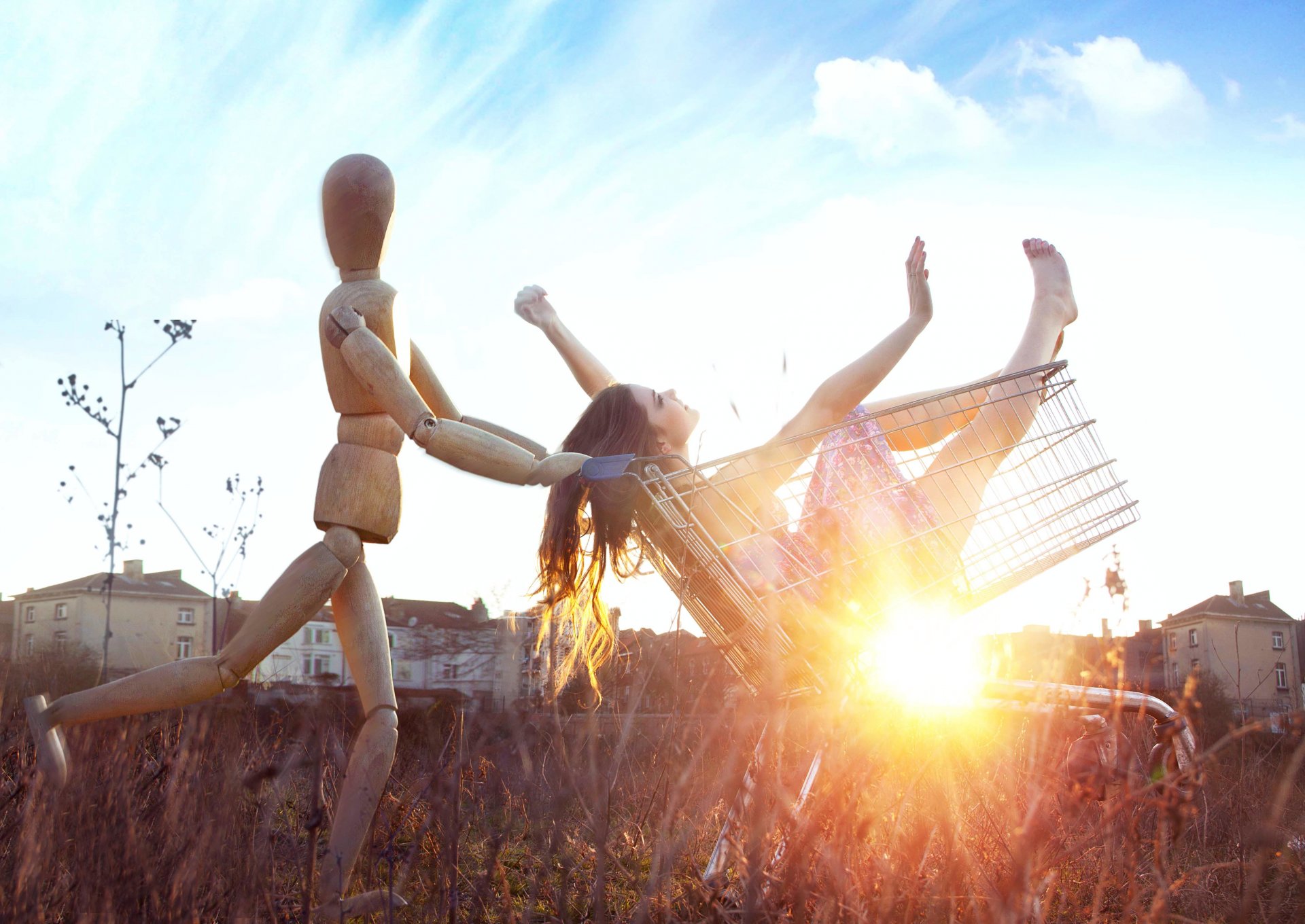 Una chica con un traje de protección se encuentra cerca de un monstruo