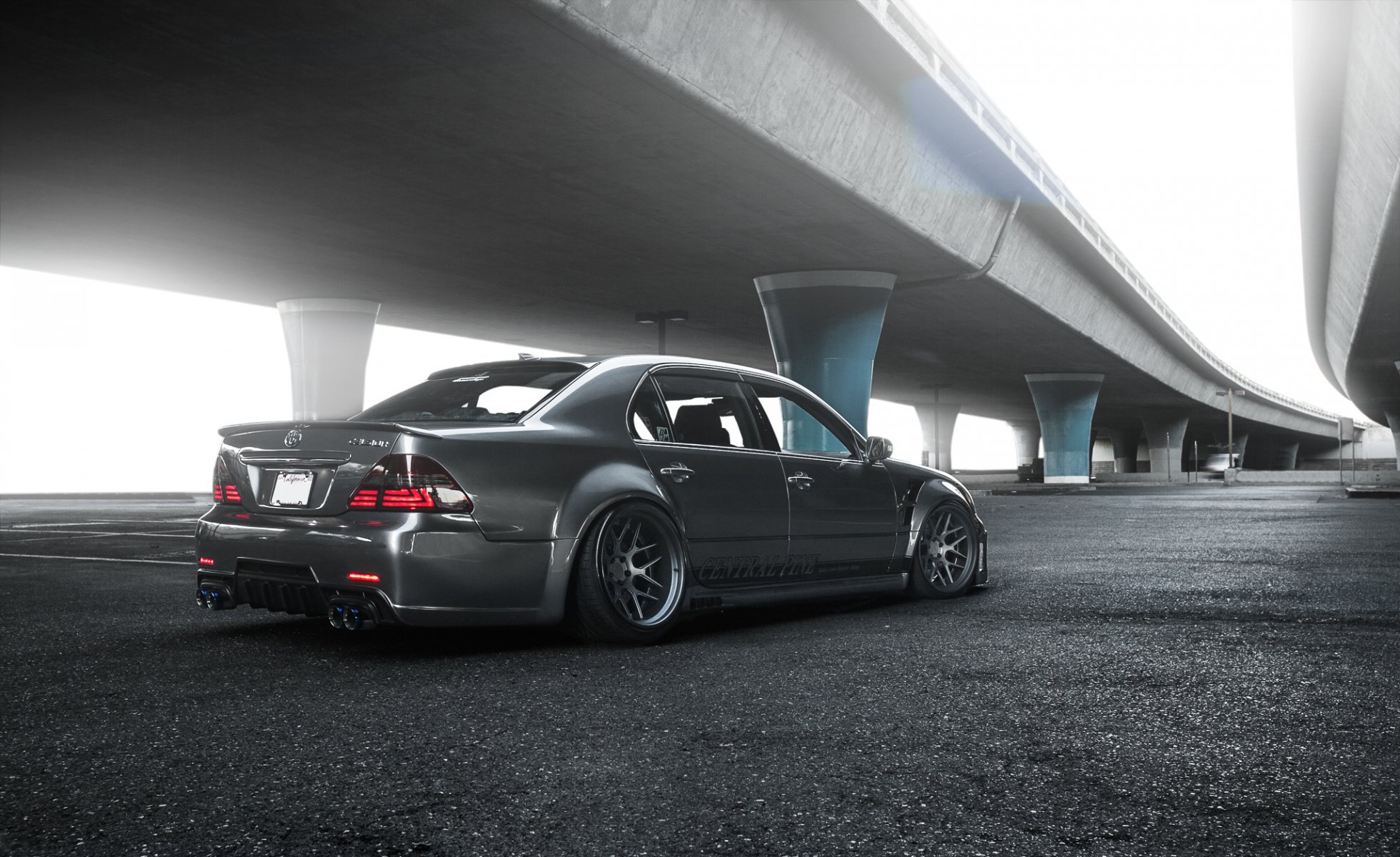 Un toyota gris en medio del garaje. vista posteriorUn Toyota gris en medio del garaje. Vista posterior