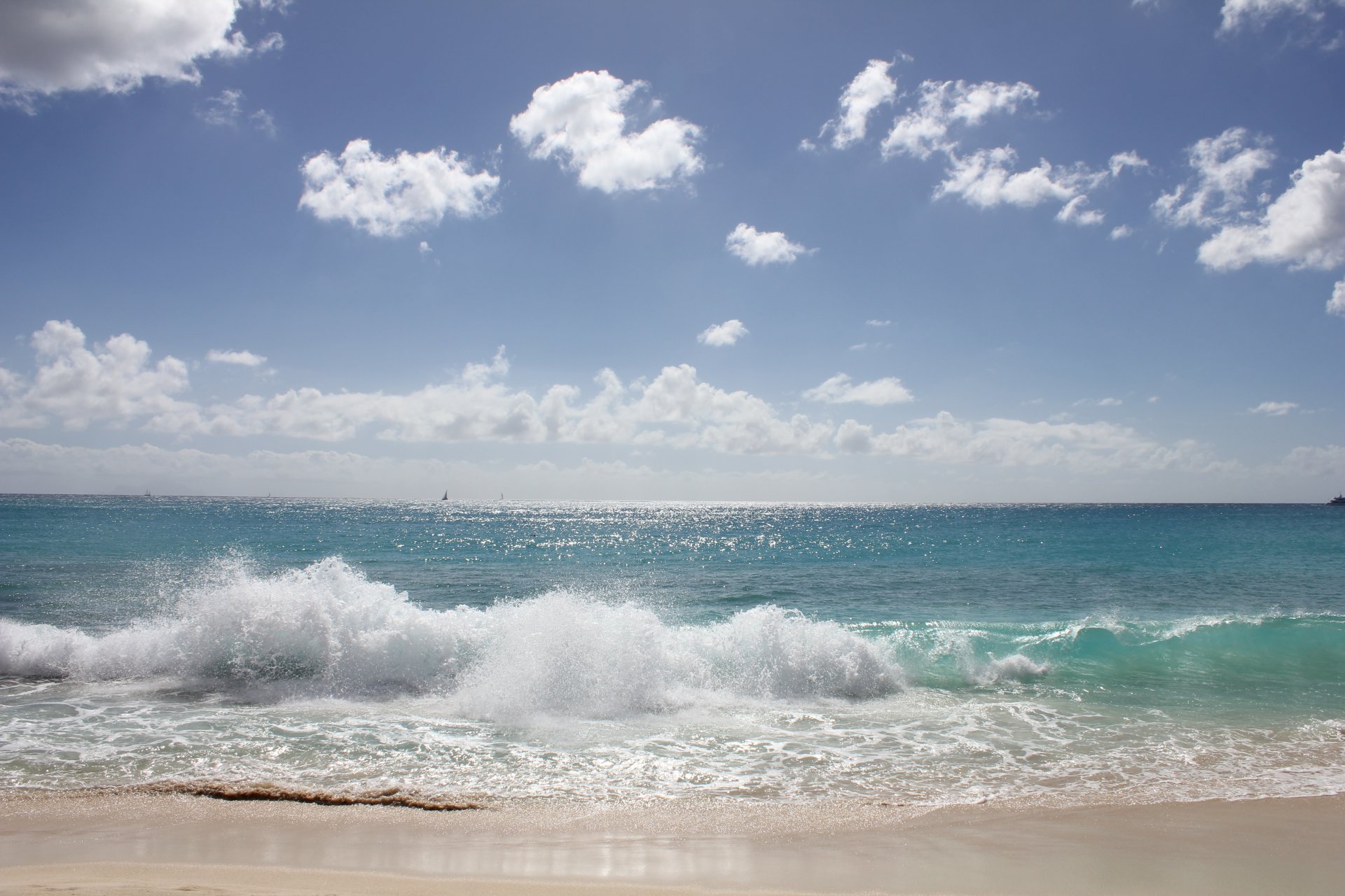 El profundo esplendor del océano azul , el agua espumada por las olas y el horizonte nubladoEl profundo esplendor del océano azul , el agua espumada por las olas y el horizonte nublado