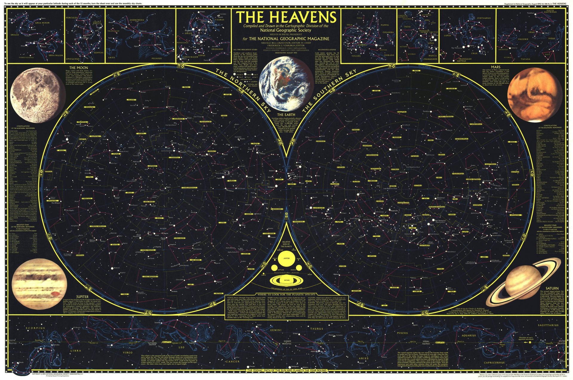 Mapa espacial con constelaciones y planetas