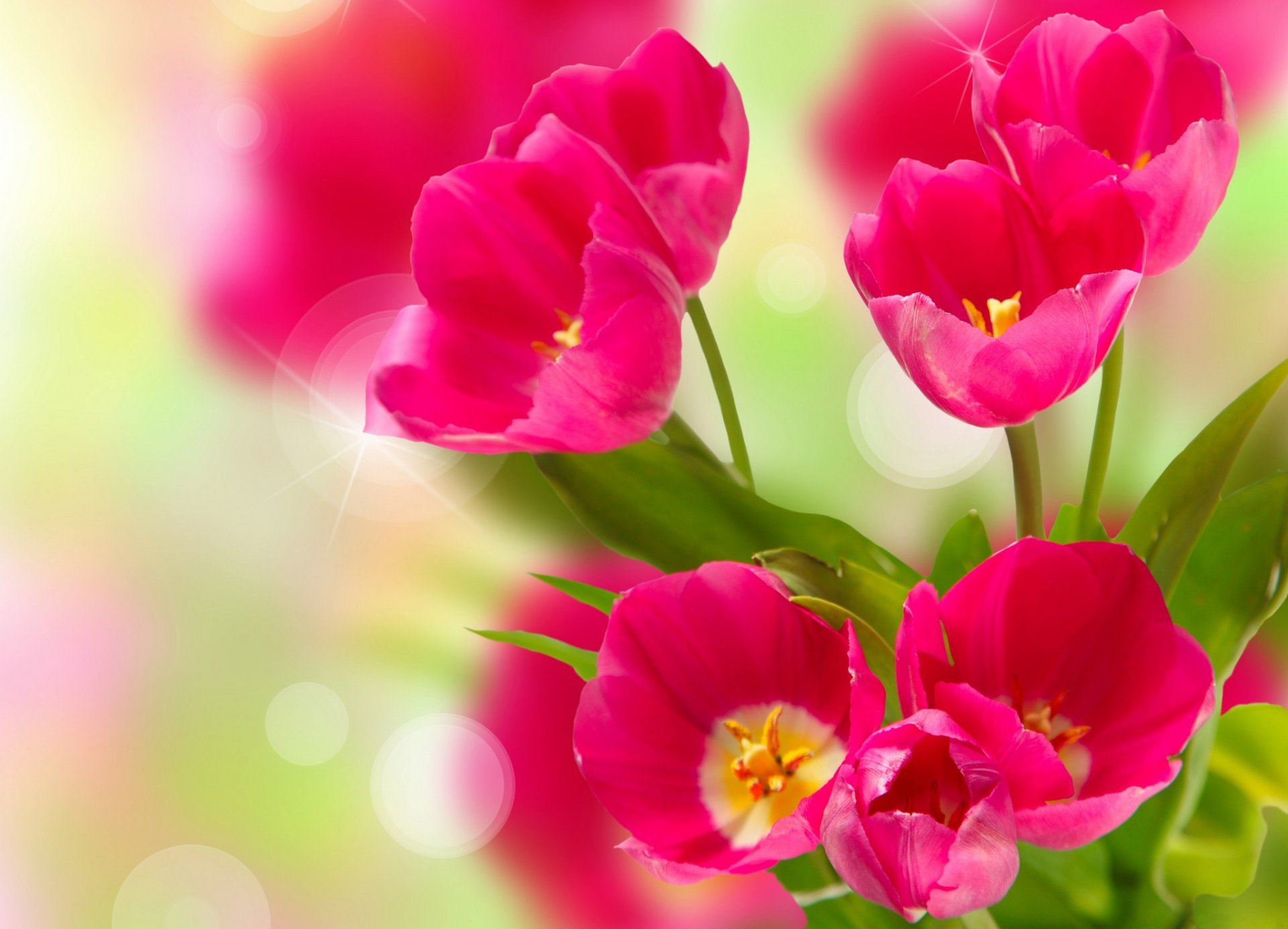 Tulipanes de color rosa brillante con medias amarillasTulipanes de color rosa brillante con medias amarillas
