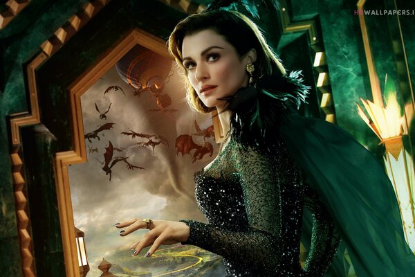 Una chica desnuda con el pelo largo mojado yace en el agua sobre un fondo borroso de la costa verde y el cielo azul