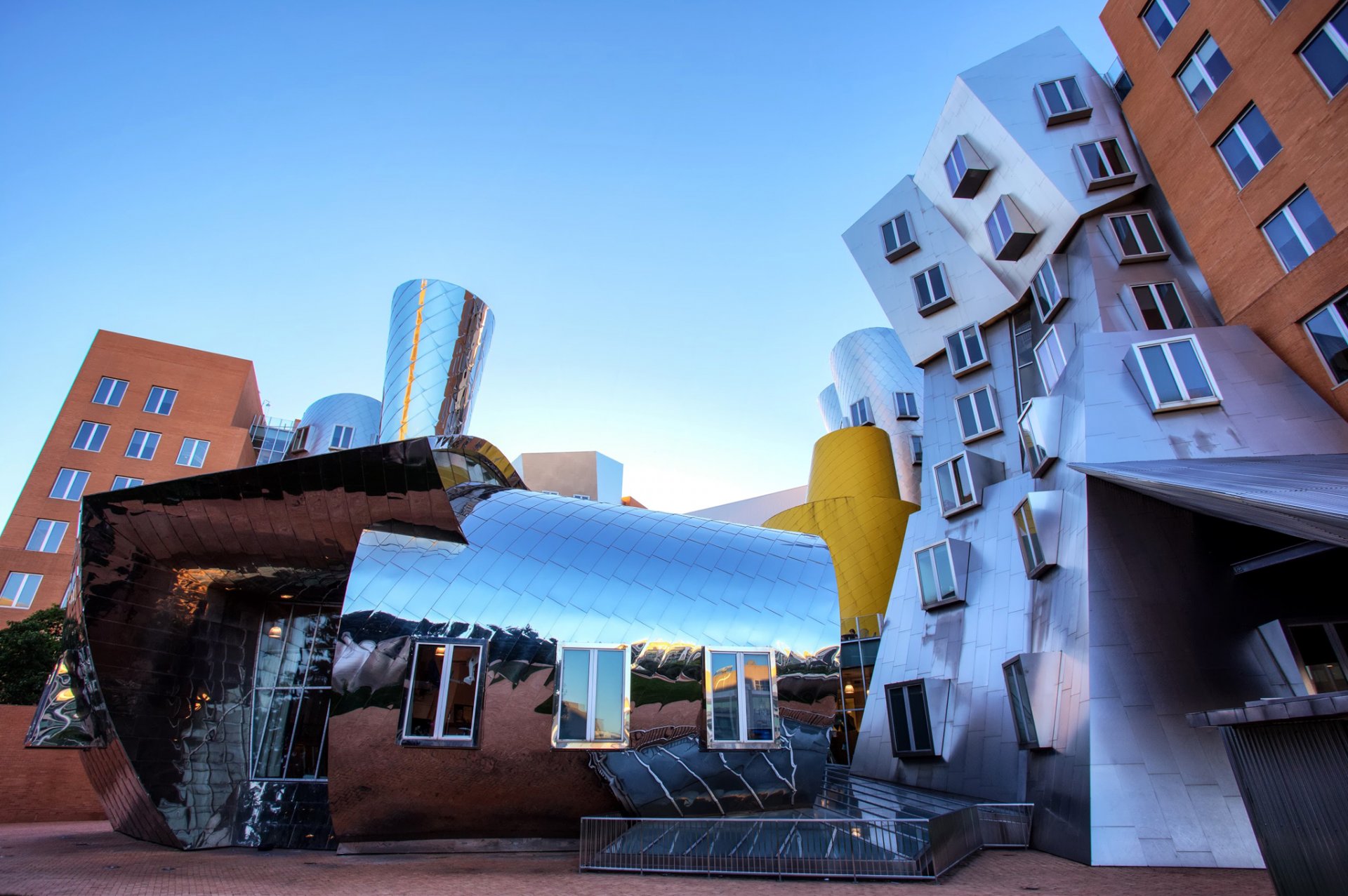 Paisaje arquitectónico con una casa inusual con ventanasPaisaje arquitectónico con una casa inusual con ventanas