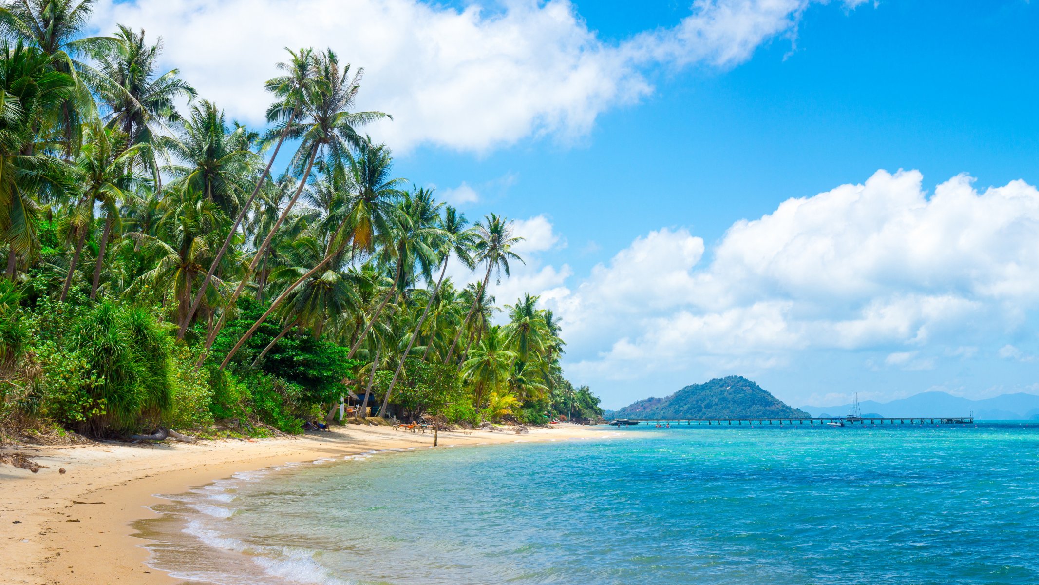 Palmeras en la arena tropical en verano junto al marPalmeras en la arena tropical en verano junto al mar