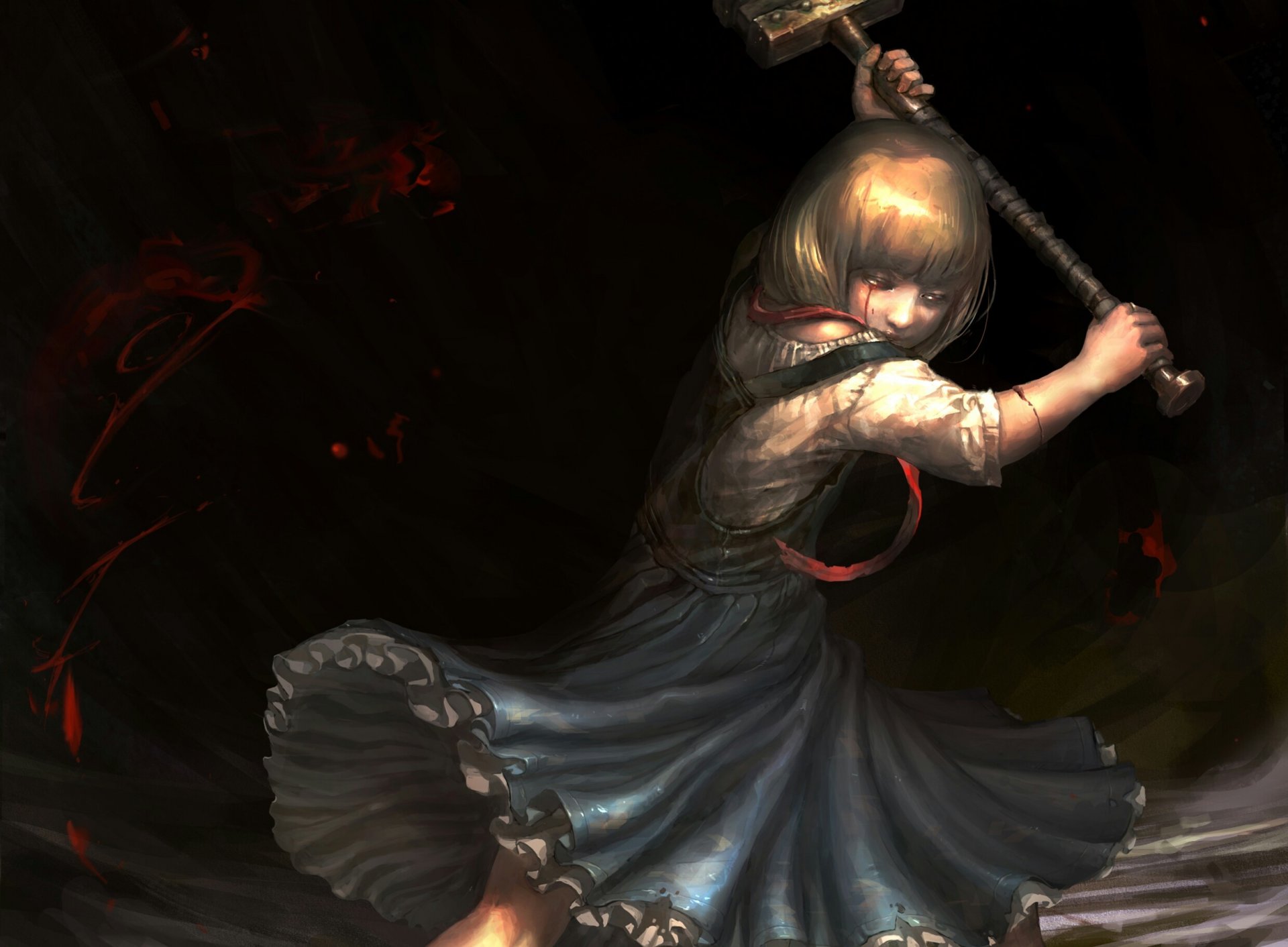Hermosa foto de una chica con un vestido con el pelo blanco en el bosqueHermosa foto de una chica con un vestido con el pelo blanco en el bosque