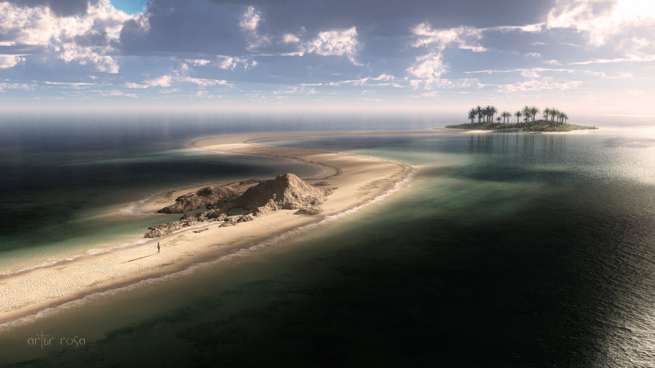Los rayos del sol calientan las palmeras en la islaLos rayos del sol calientan las palmeras en la isla
