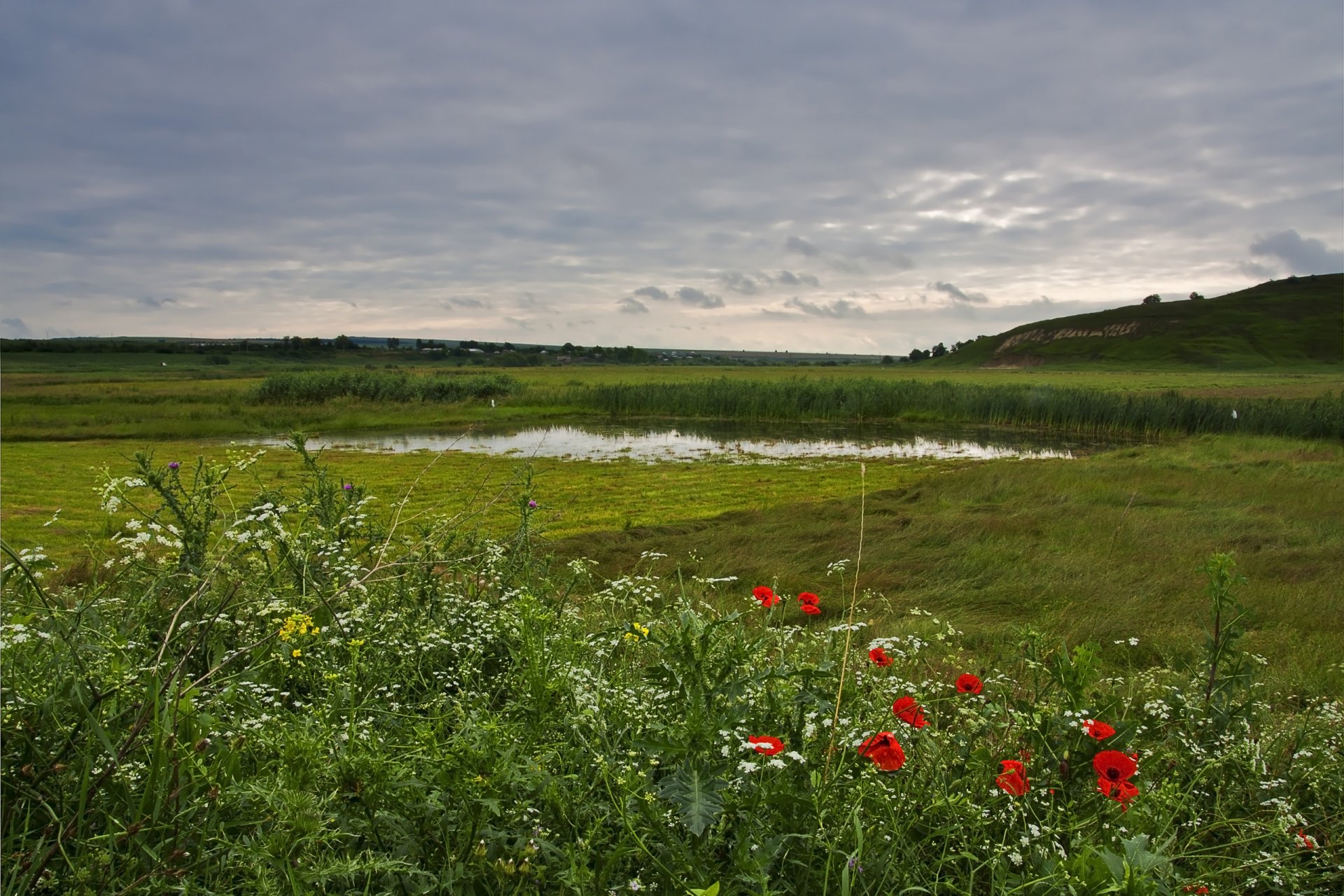Parque con bancos bajo el cielo nublado al atardecerParque con bancos bajo el cielo nublado al atardecer