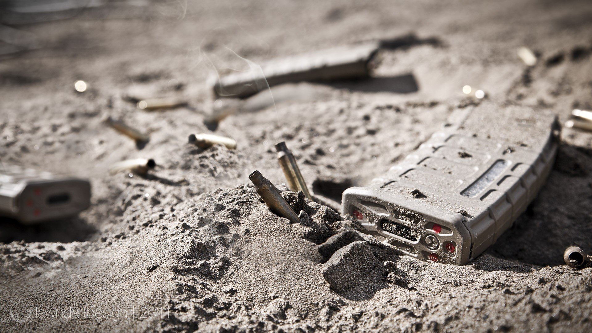 Rifle de pie en camuflaje en la arena