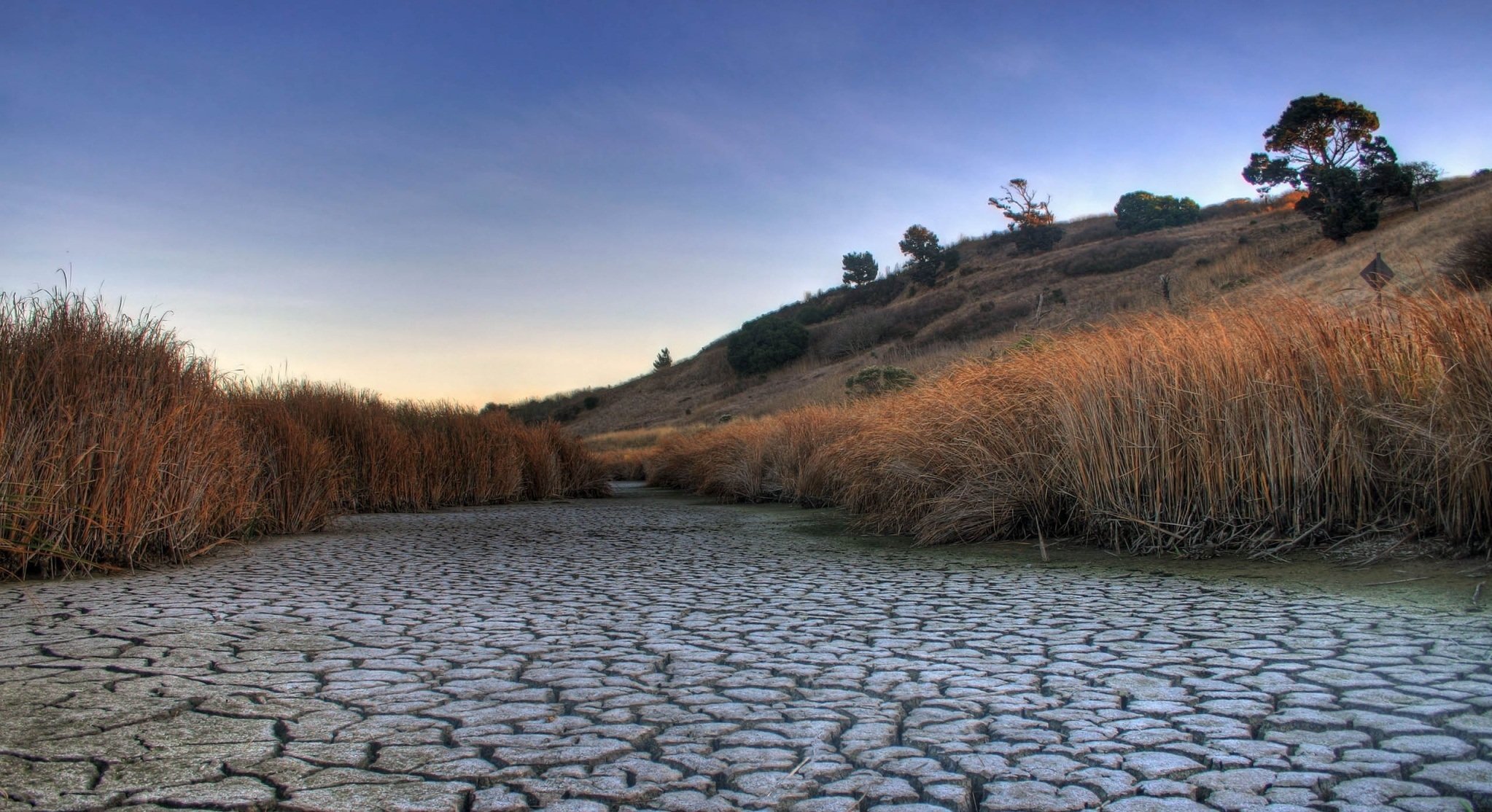 Tres caballos de pie en la orilla de un abrevadero en los rayos del sol