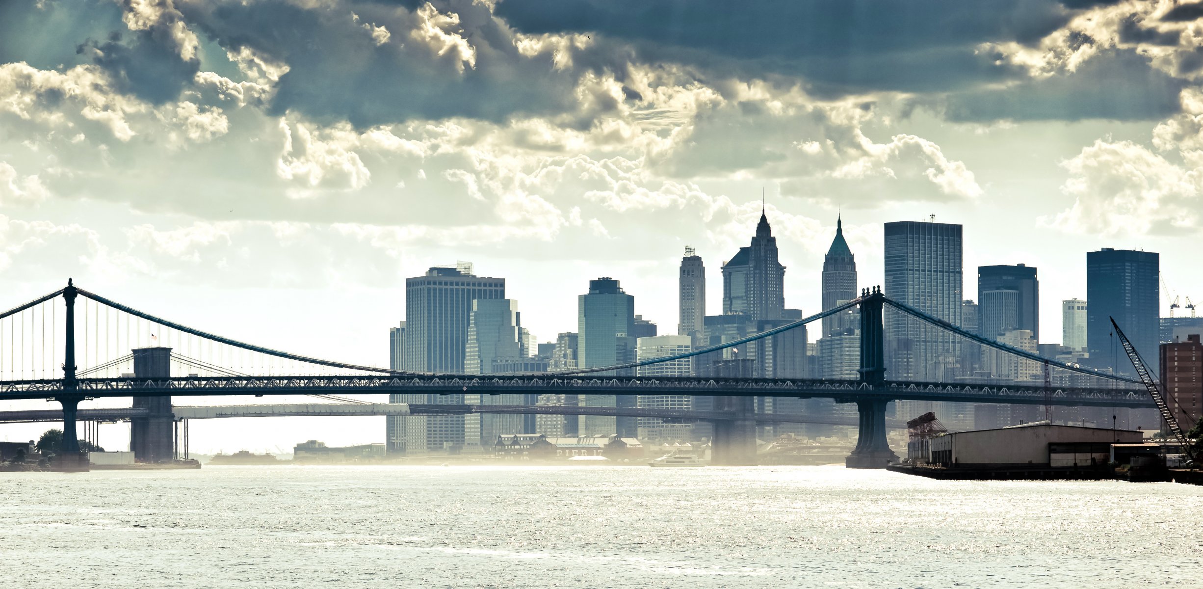 Puente sobre el río en el fondo de los edificios de la ciudad