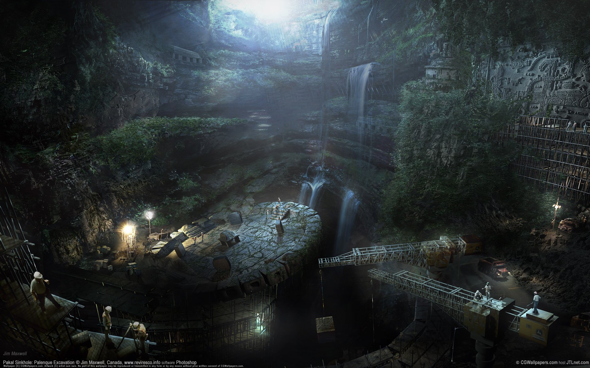 Las excavaciones de Jim Maxwell en una cueva subterránea a la luz de una linterna