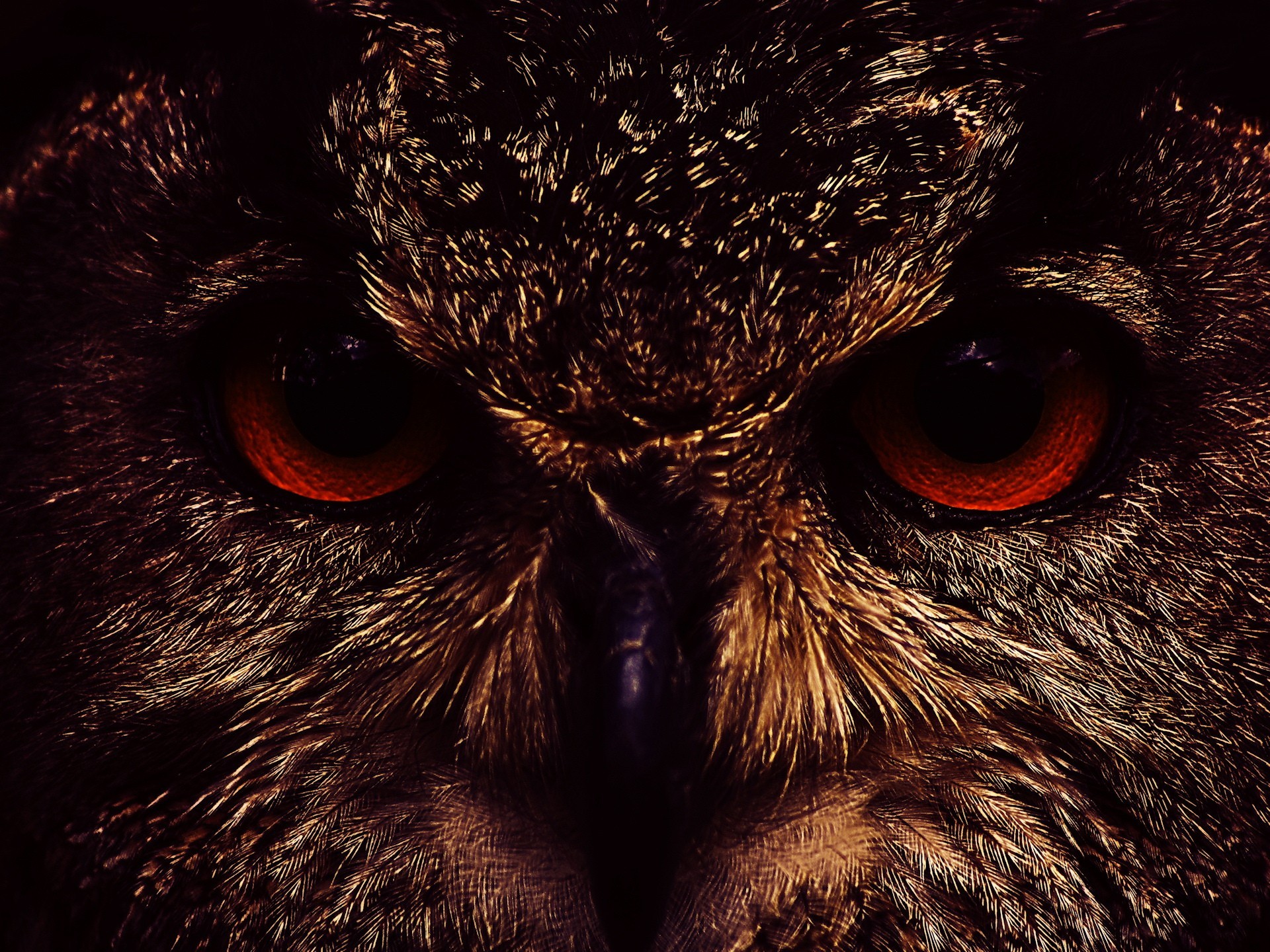 Ojos de búho rojo primer plano