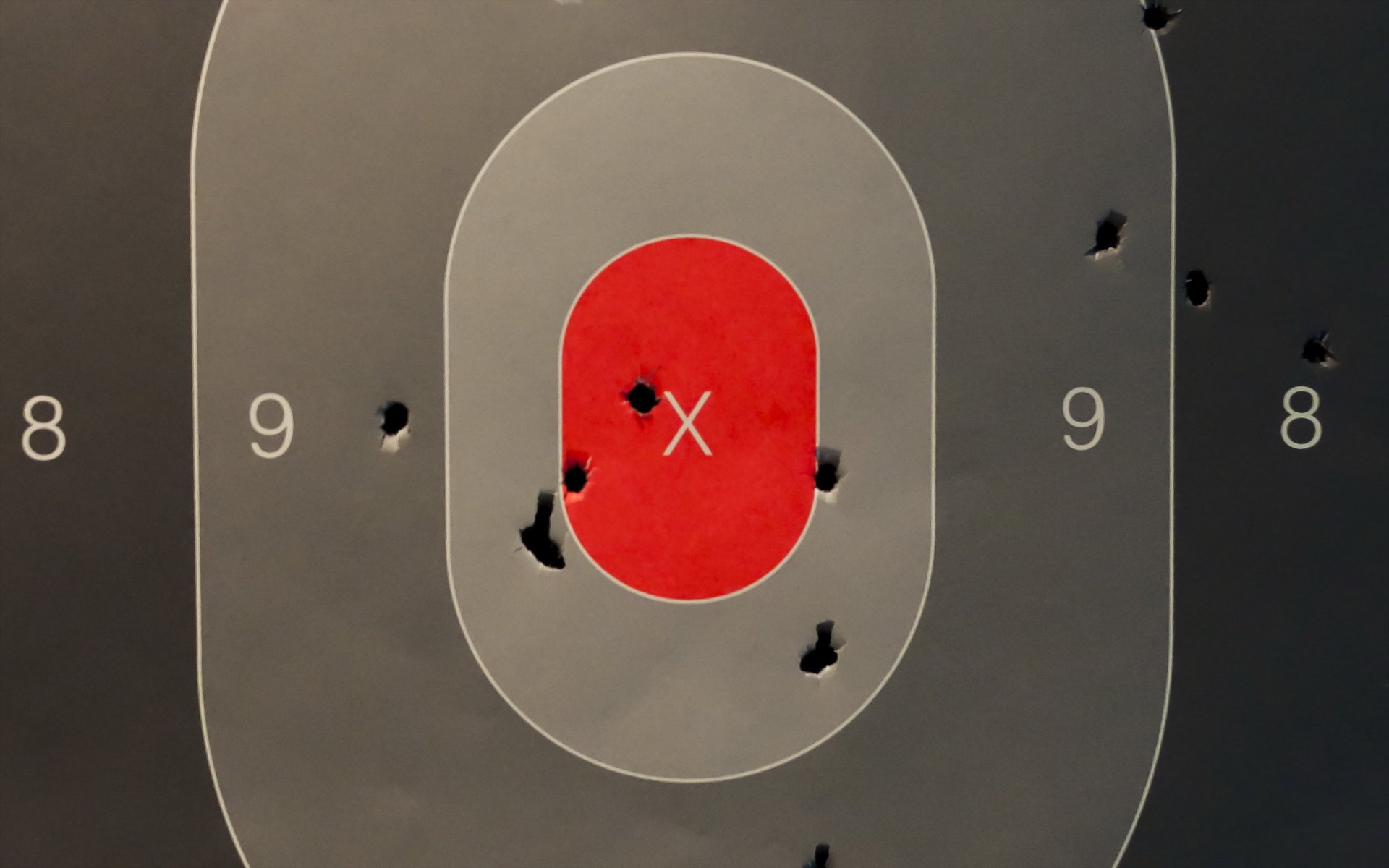 Ilustración de un mouse de computadora en el fondo de un objetivo