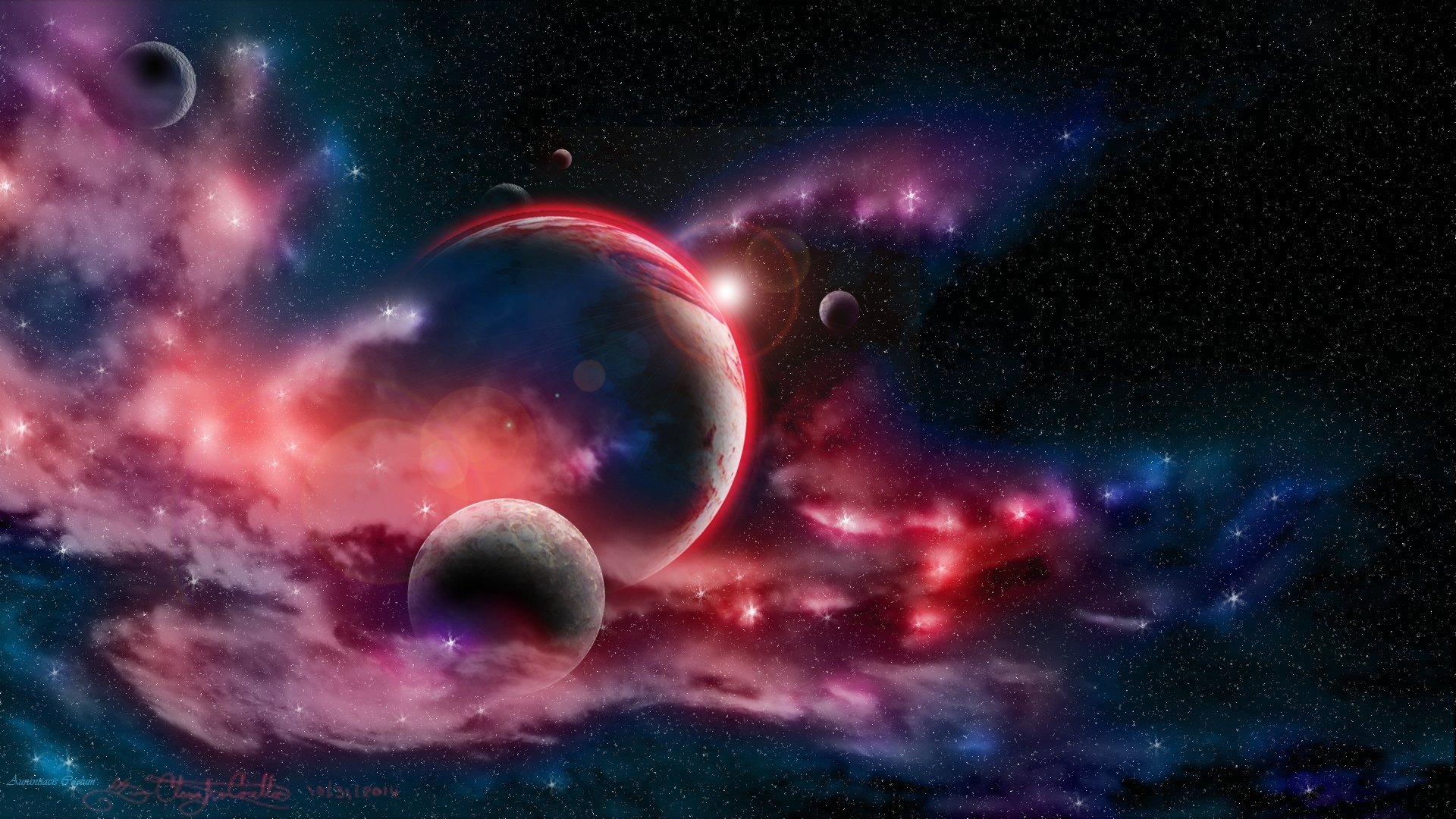 La galaxia de Andrómeda rodeada de estrellas y planetas
