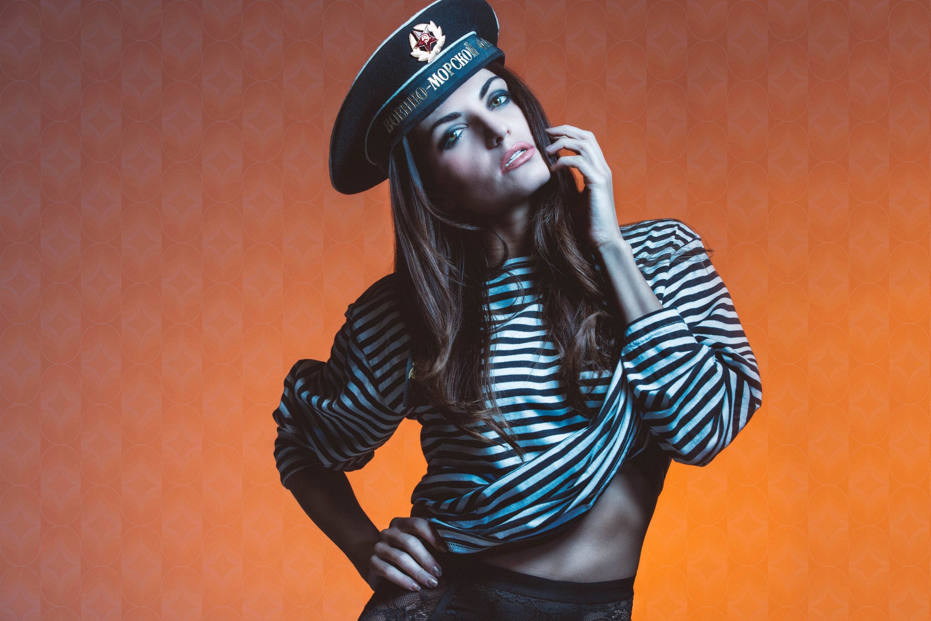 El marinero en el chaleco en bezkozyrka stoitk