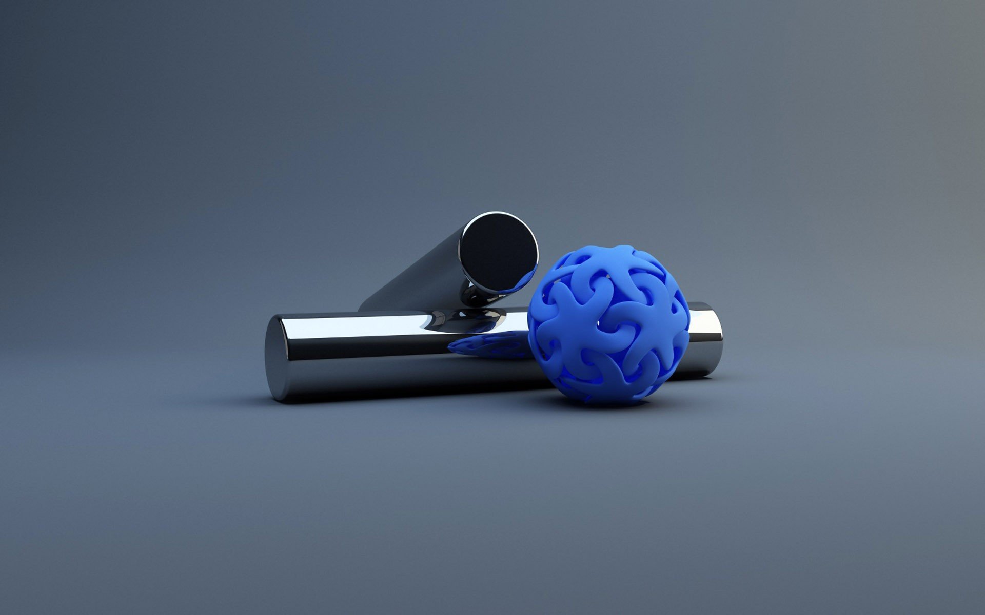 Exposición - dos cilindros y una bola azul