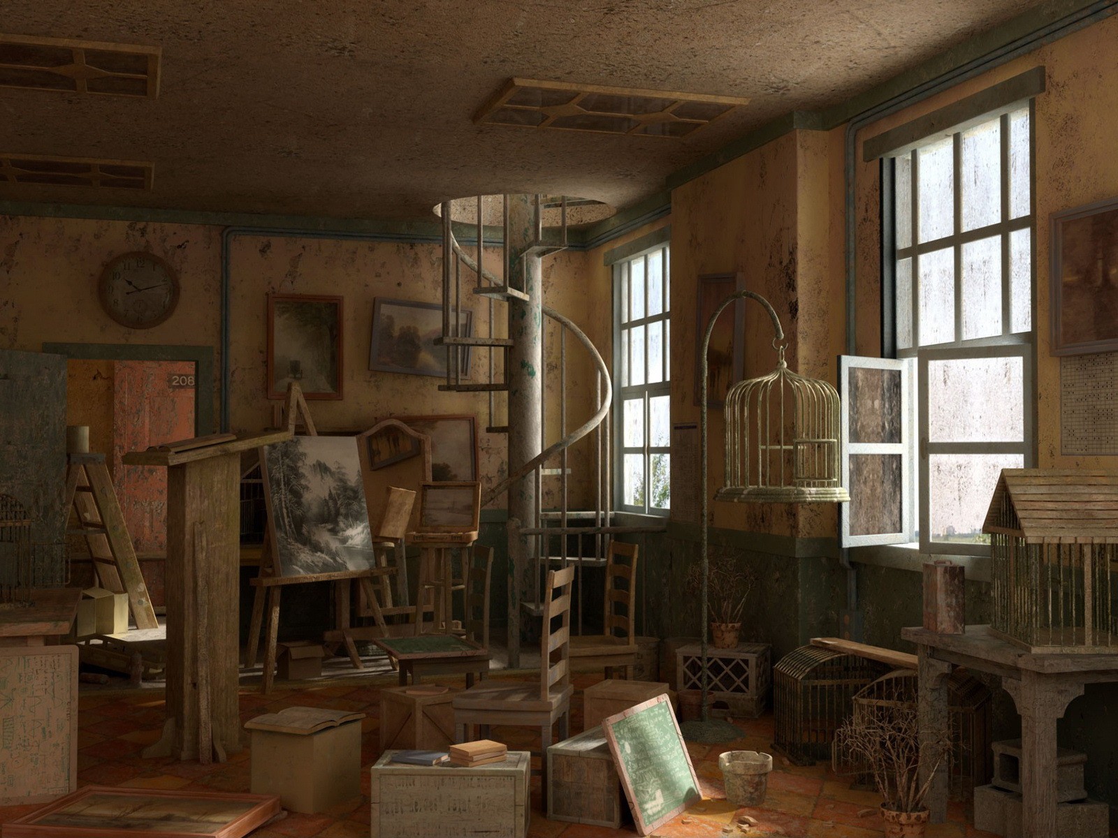 Cuarto lleno de cajas y de escaleras