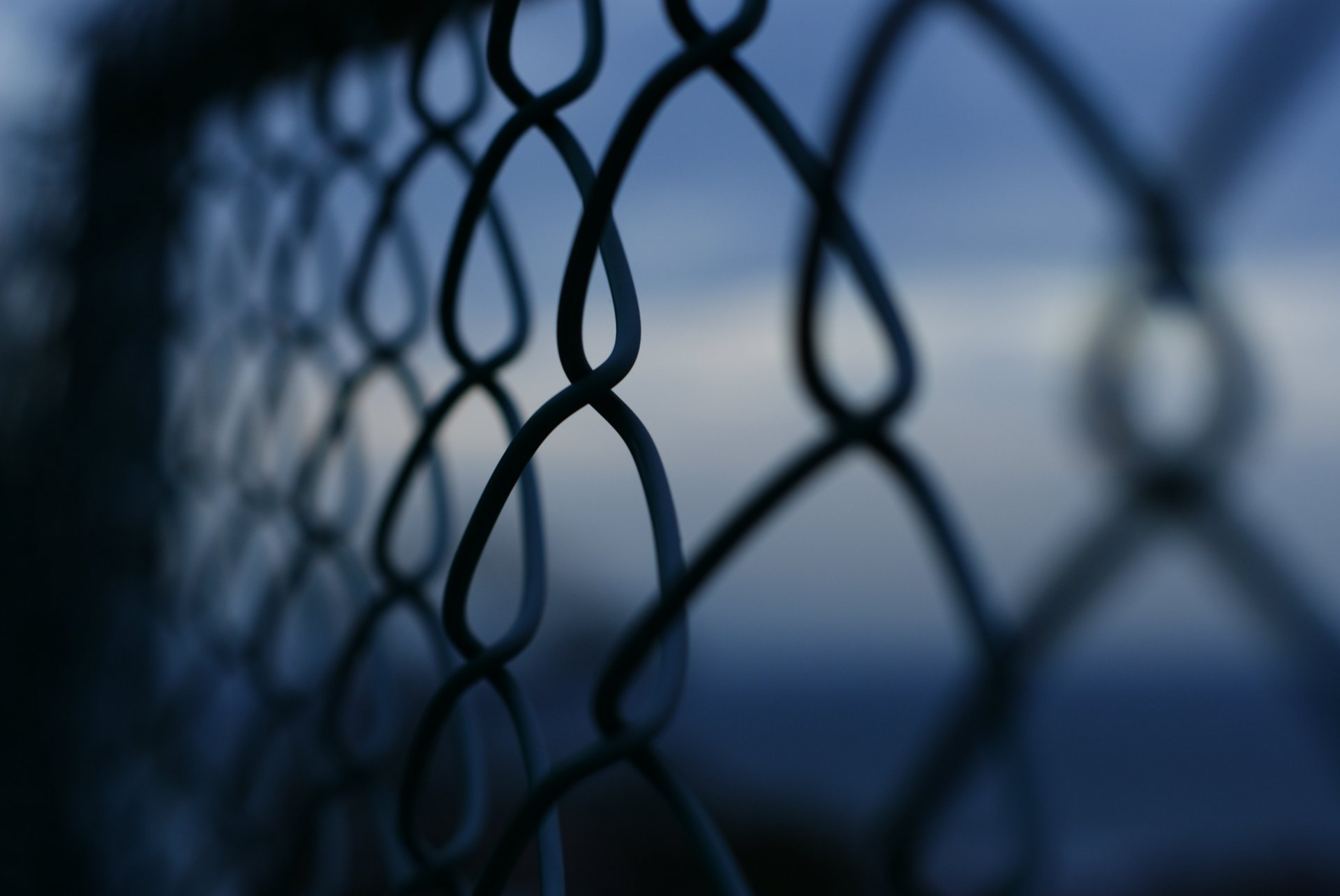Una pequeña rama de vegetación en una vieja cerca como símbolo de fuerza de voluntad