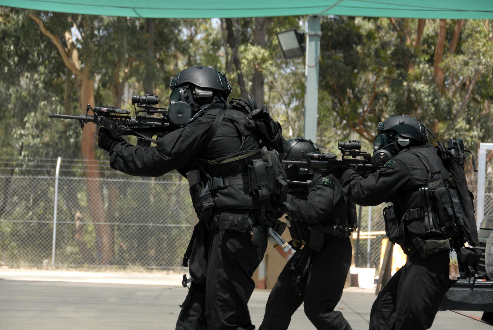 Fuerzas especiales enmascaradas, chalecos antibalas, armadas