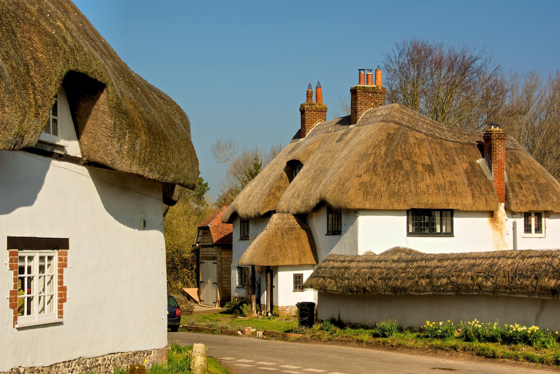 Casa en zona de peligro con hierba seca en medio de chimeneas humeantes y gris