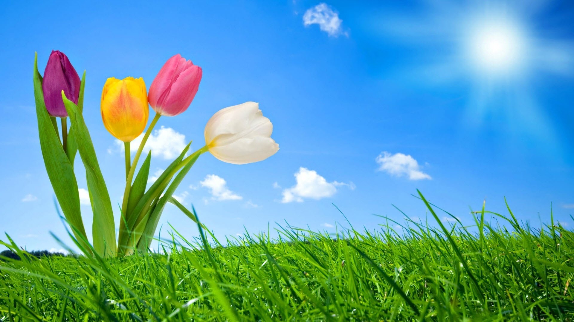 Un claro verde en las montañas en el fondo de la puesta de sol