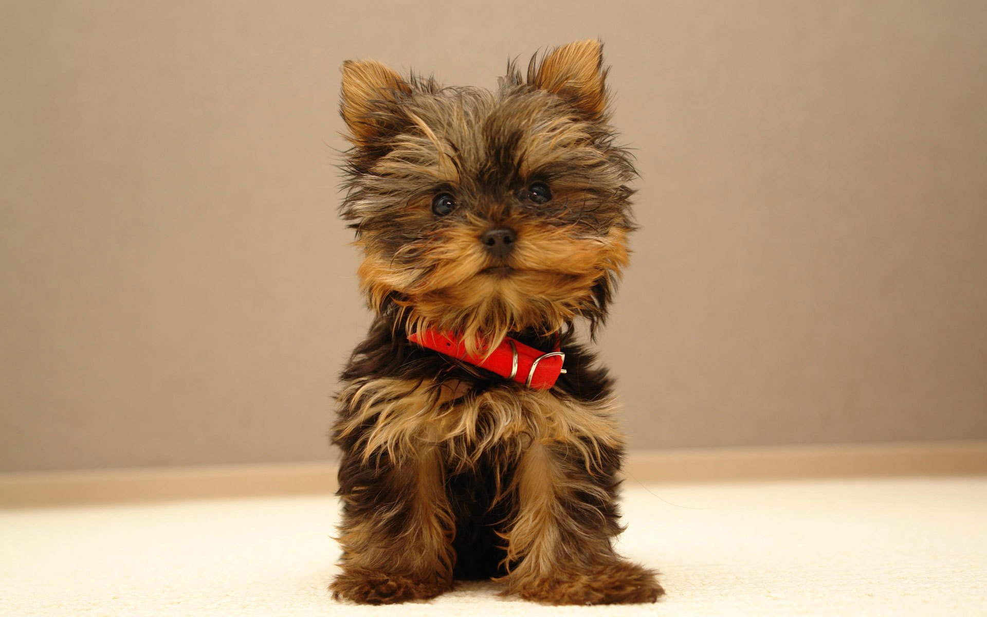 Pequeño cachorro lindo con collar rojo