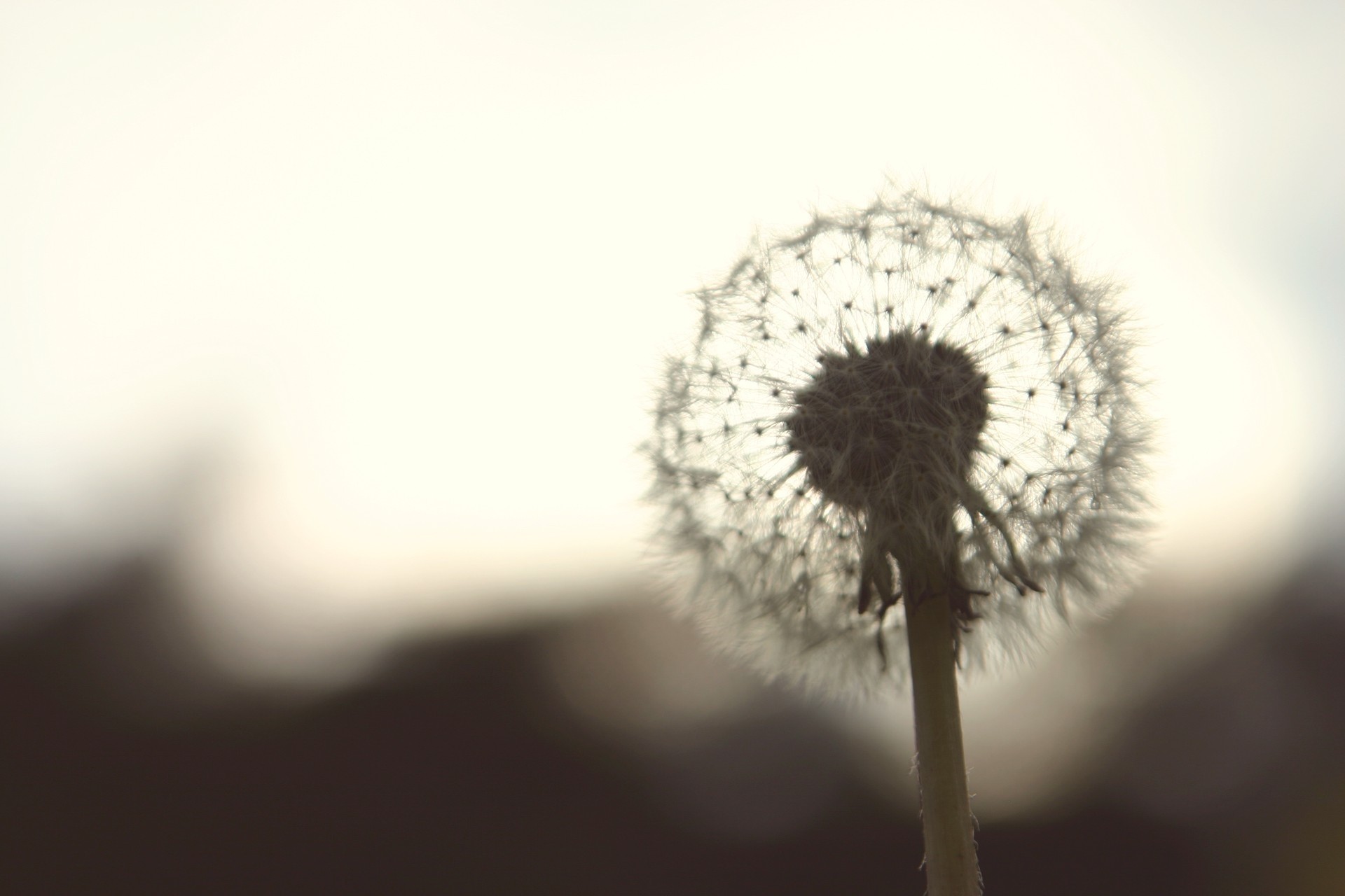 La flor del diente de León se coloca muy suavemente sobre una pierna hueca