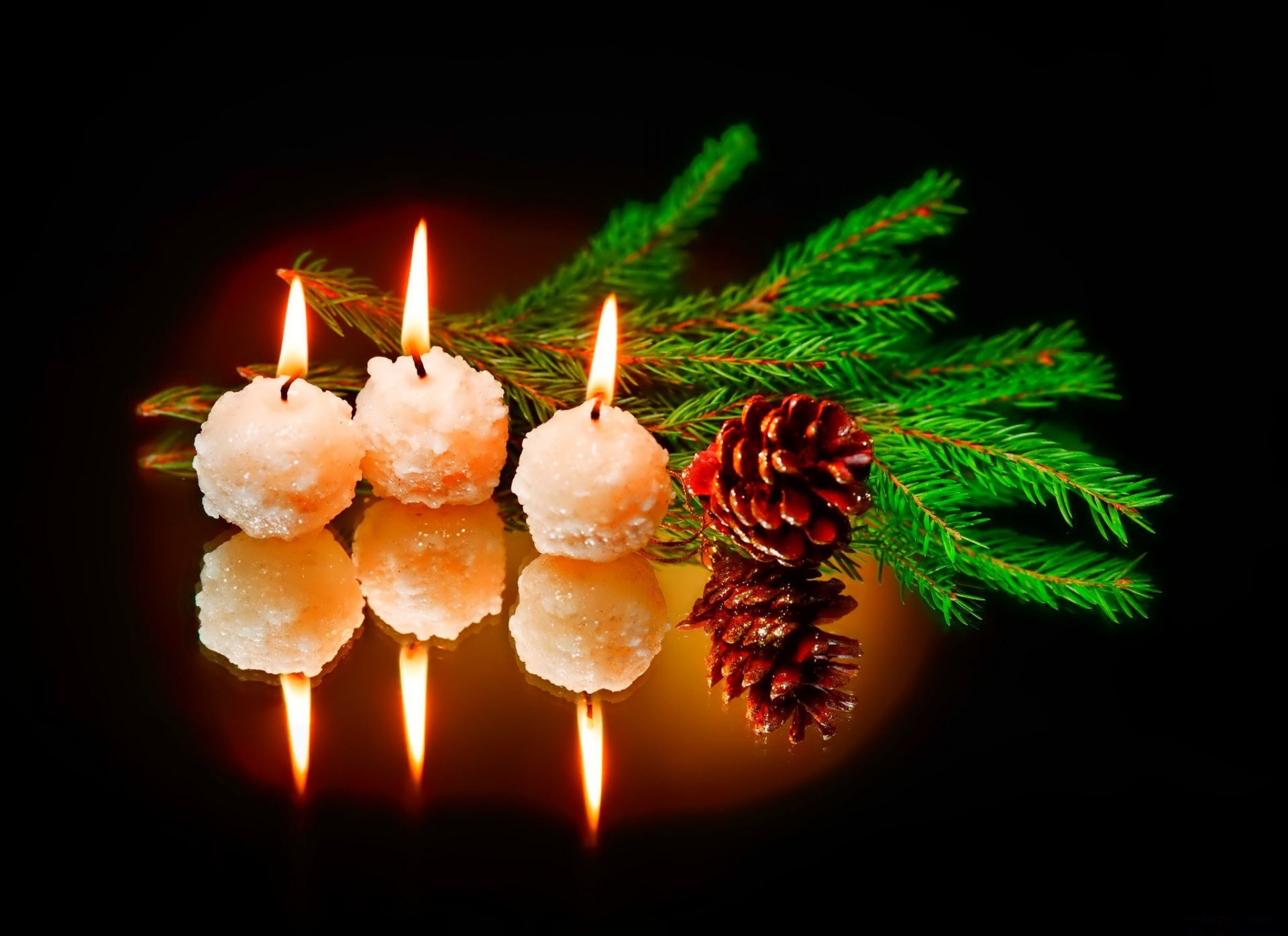 Velas de Navidad con rama de árbol de Navidad y cono de pino