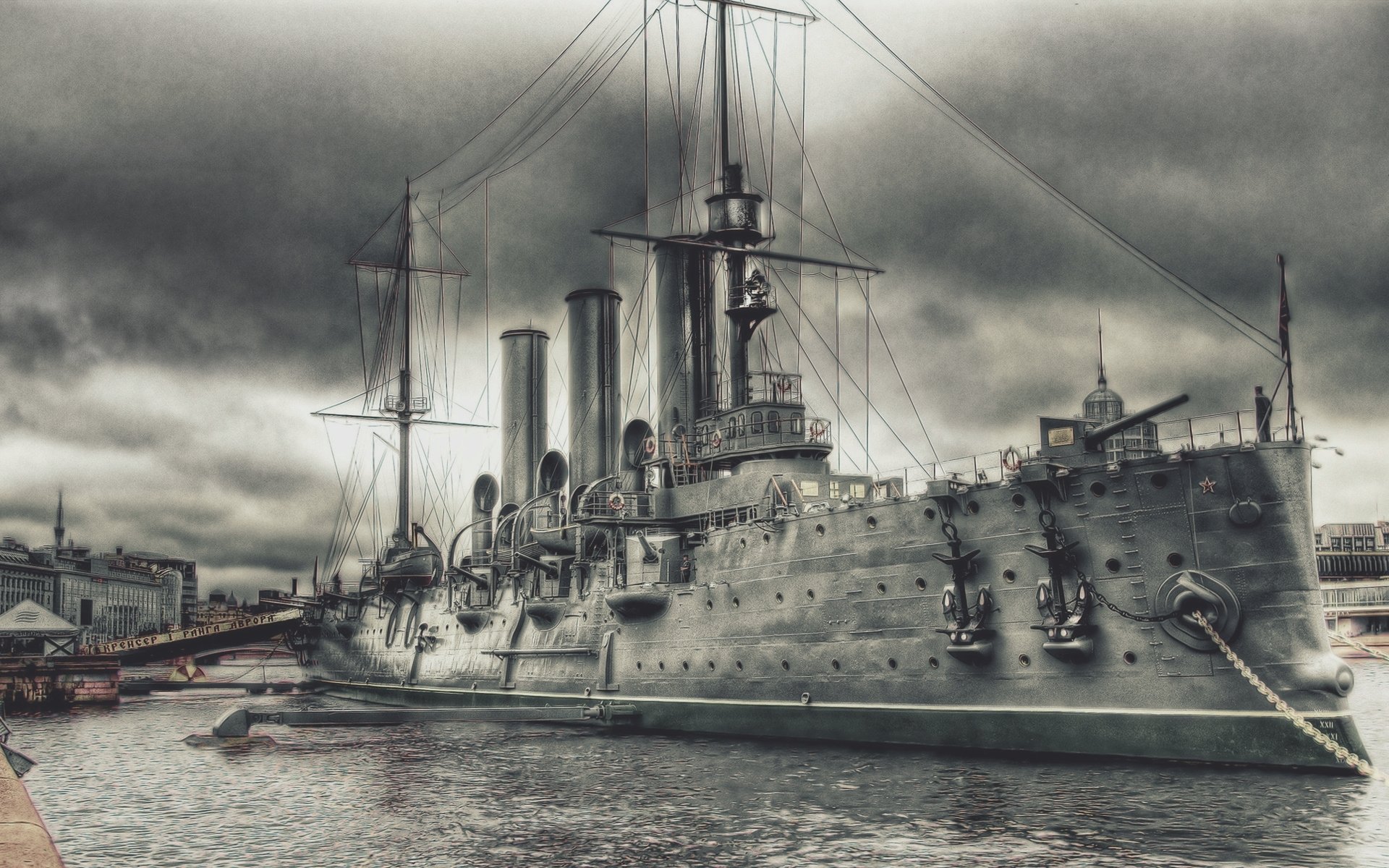 Crucero Aurora en el fondo de la escuela naval de Nakhimov