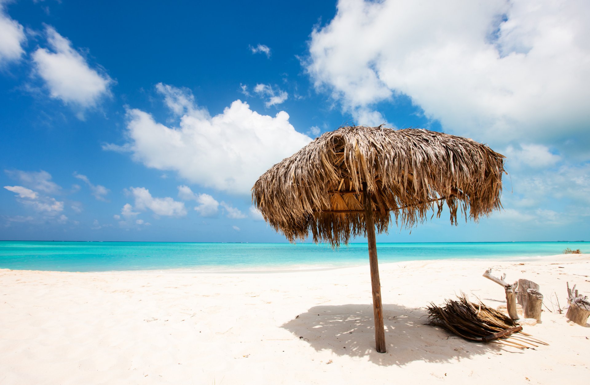 Playa de arena blanca con palmeras