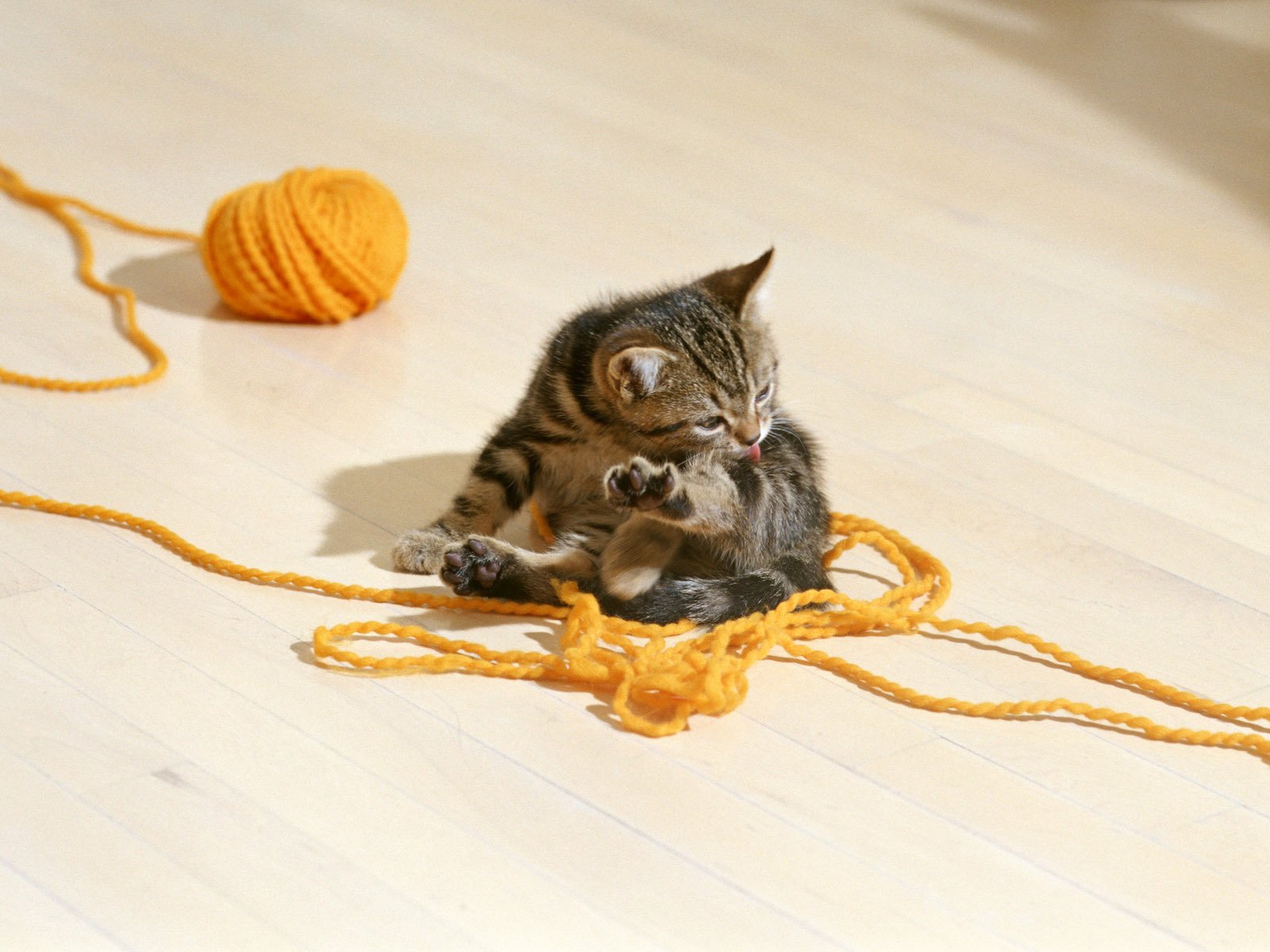 Gatito rayado con una bola de hilo