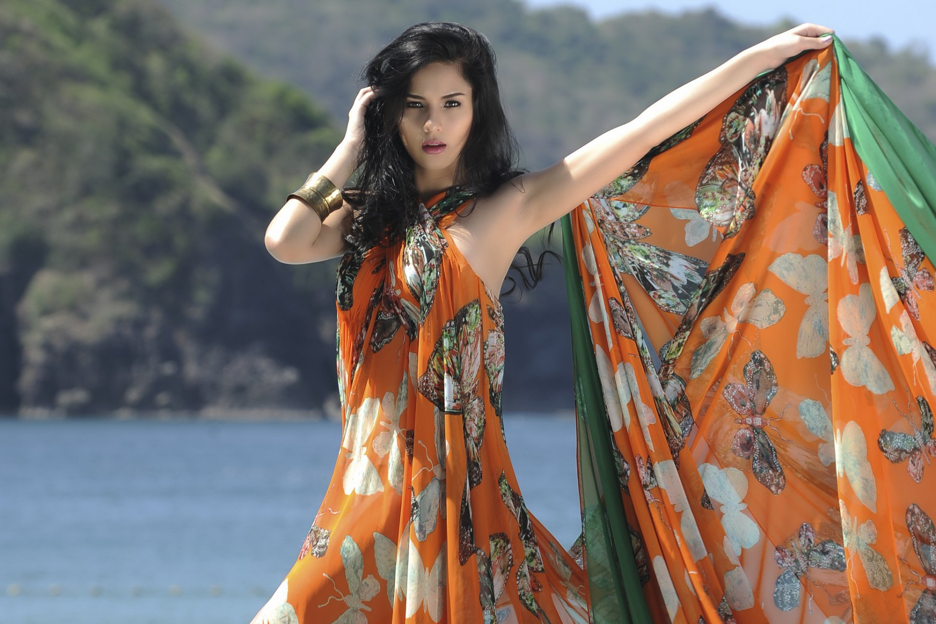 Modelo de chica se acuesta en el Sofá en una pose extraña