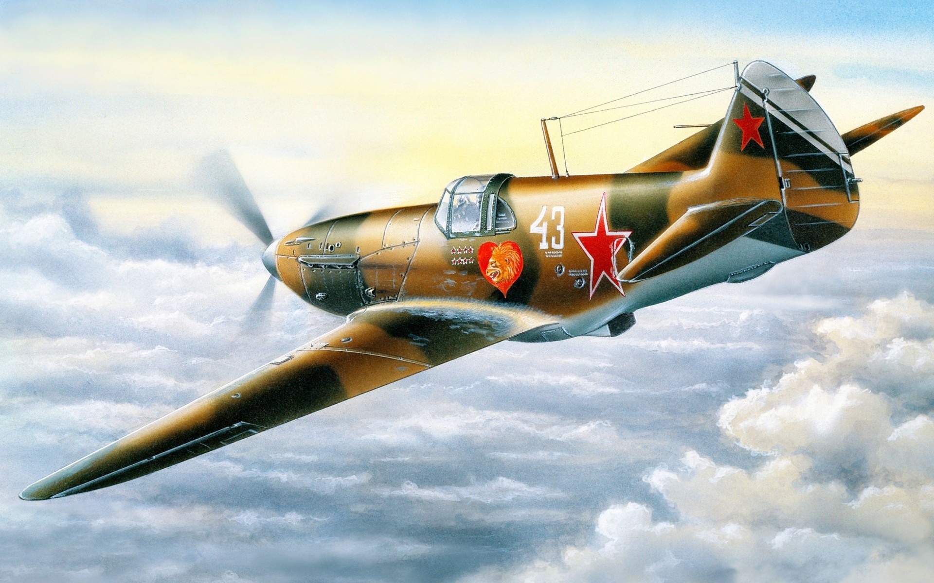 Avión de combate soviético lagg-3 en el cielo en la guerra