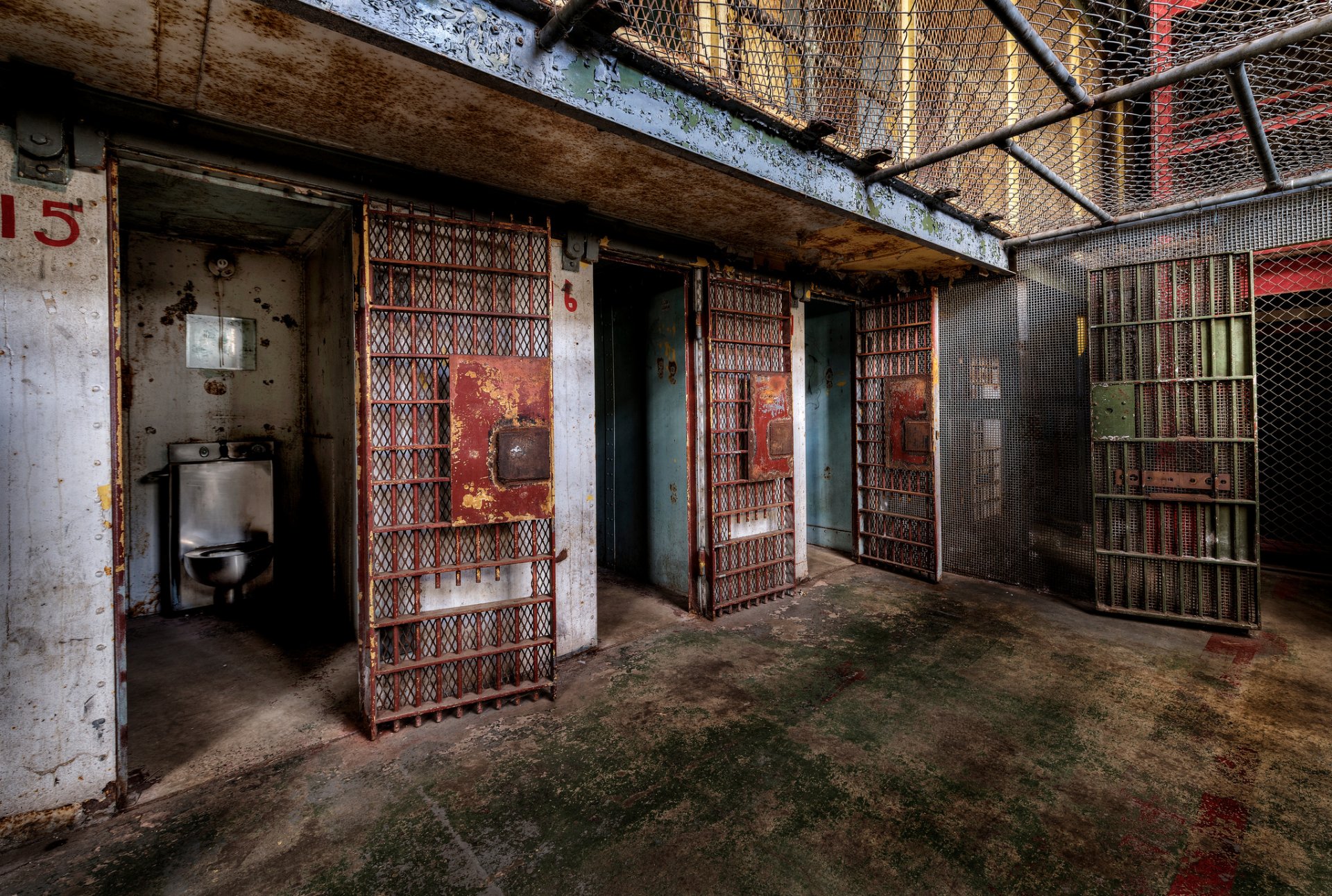El sombrío coredor de la prisión en las columnas de máxima seguridad