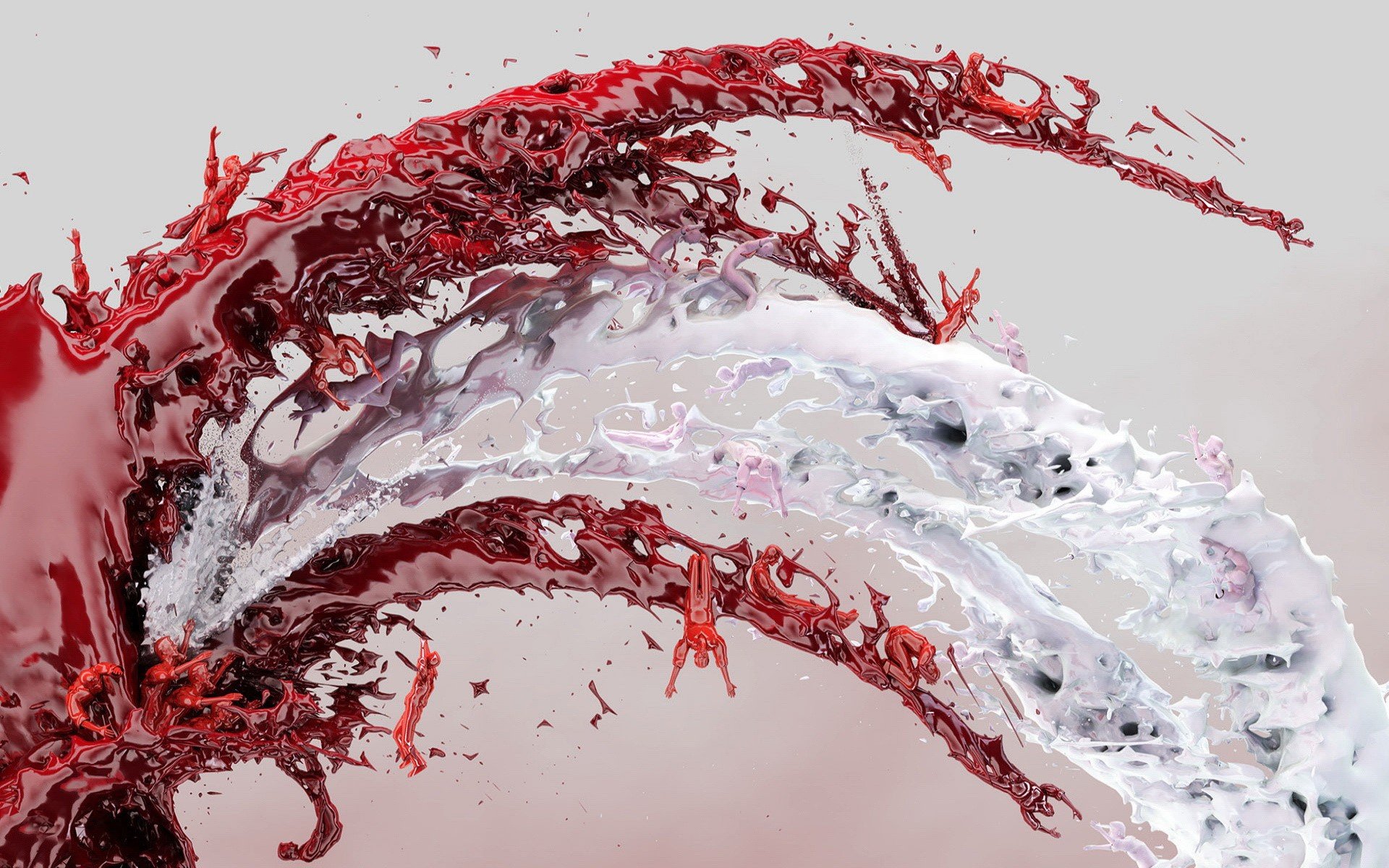 Salpicaduras de pintura roja y blanca