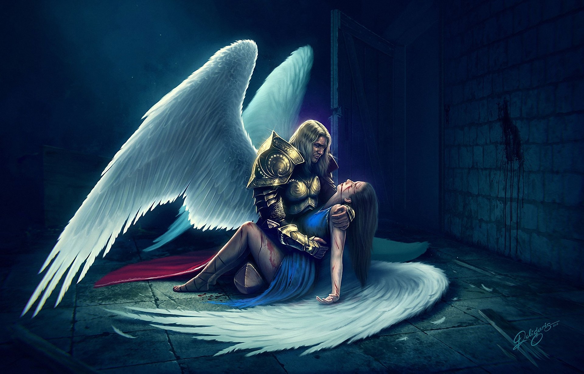 El arte de un chico con alas sosteniendo a una chica con alasEl arte de un chico con alas sosteniendo a una chica con alas